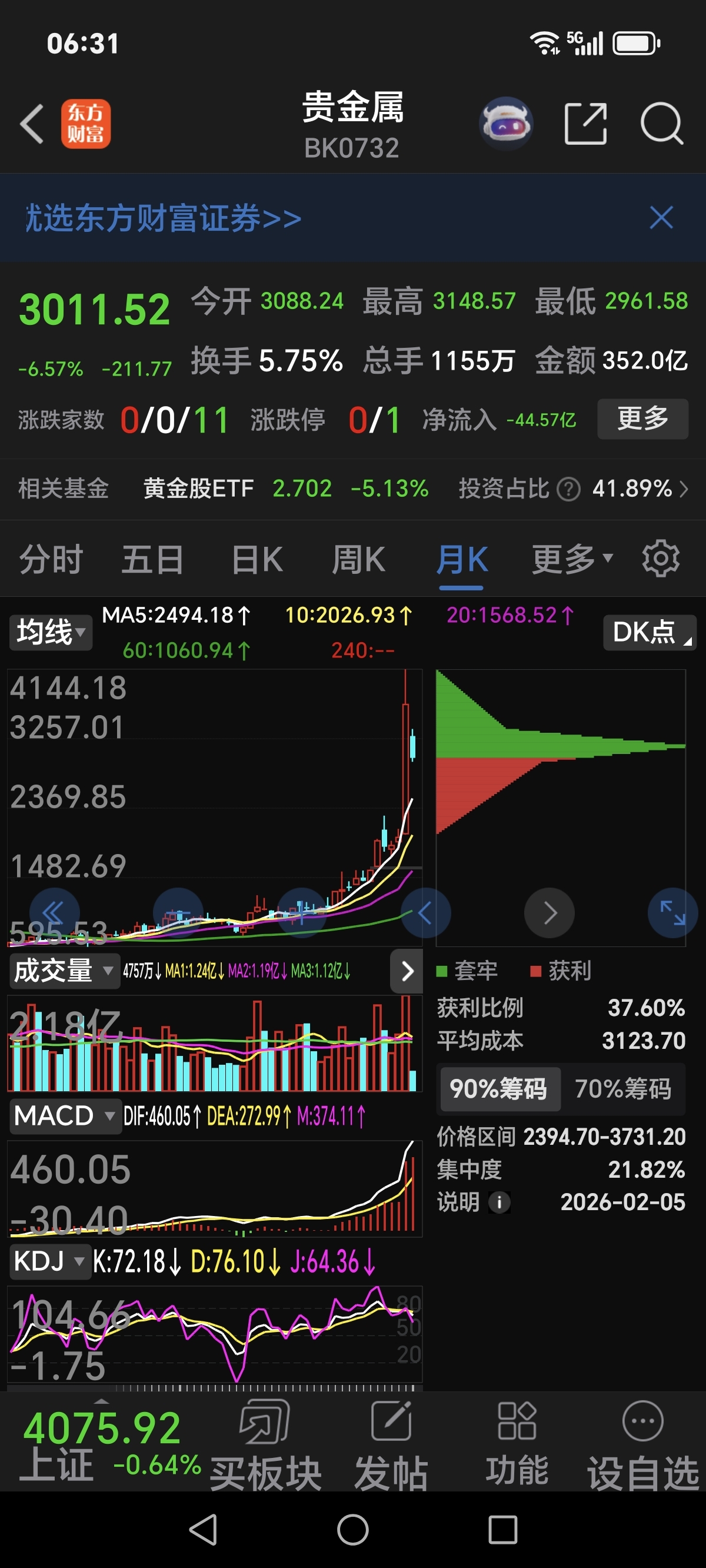 $贵金属(BK0732)$ 看一下2015年的大盘,你们就知道了,它得回调多少年?