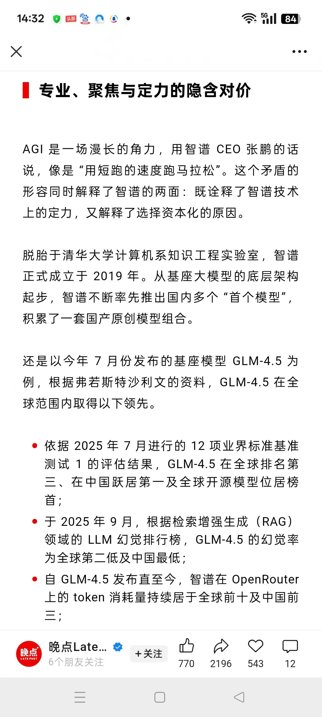 智谱成立也就6年,现在就要求它像成熟互联网公司一样赚钱,我觉得不太公平。大模型本