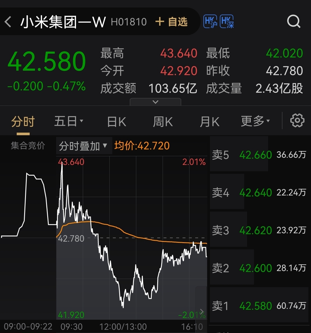 面对网上舆论压力,小米没有选择的余地,必须继续回购,稳住股价,不然股价一旦破位再加上负面舆论加速发酵后果不堪设想。大家也看到了,盘后,小米集团-W在港交所发布公告,12月8日以每股42.140港元至42.720港元的价格回购480.00万股,回购金额达2.04亿港元。又是一个亿级的回购,但股价依然没有稳住,只是勉强没有继续恶化。