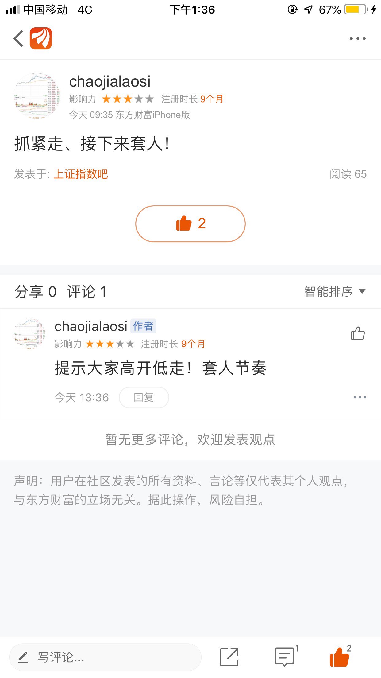 温馨提示: 1.根据《证券法》规定,禁止编造、传播虚假信息或者误导性信息,扰乱证券市场;2.用户在本社区发表的所有资料、言论等仅代表个人观点,与本网站立场无关,不对您构成任何投资建议。用户应基于自己的独立判断,自行决定证券投资并承担相应风险。《东方财富社区管理规定》