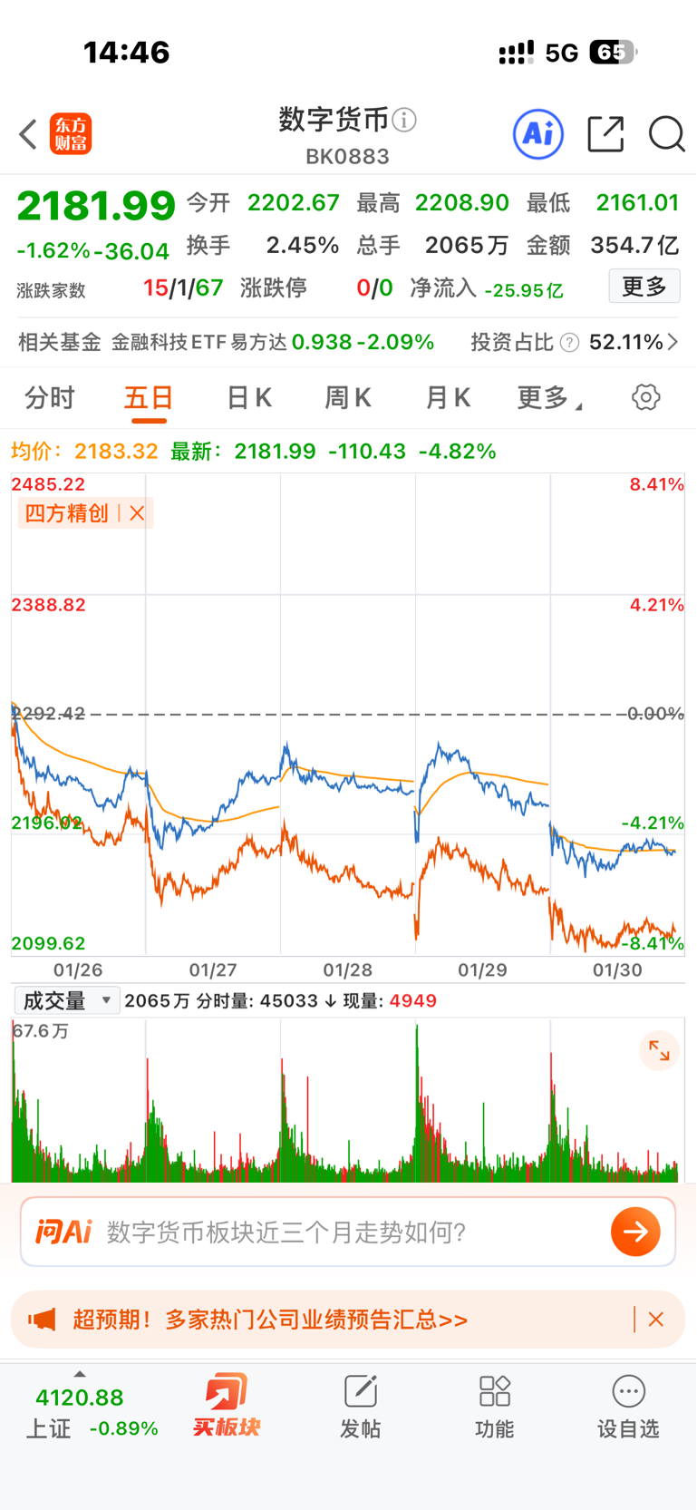 $数字货币(BK0883)$ 一模一样,量化控盘了