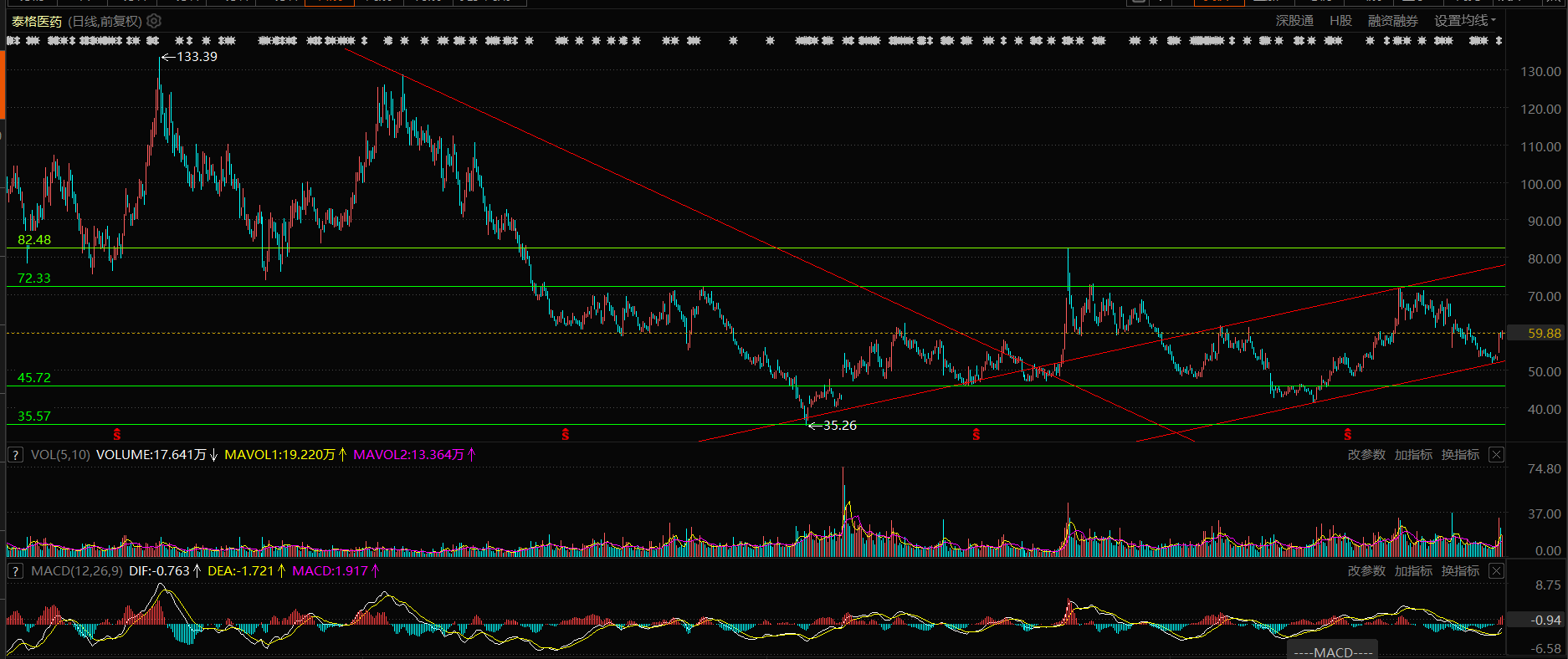 泰格医药,看看通道下轨能不能支撑住