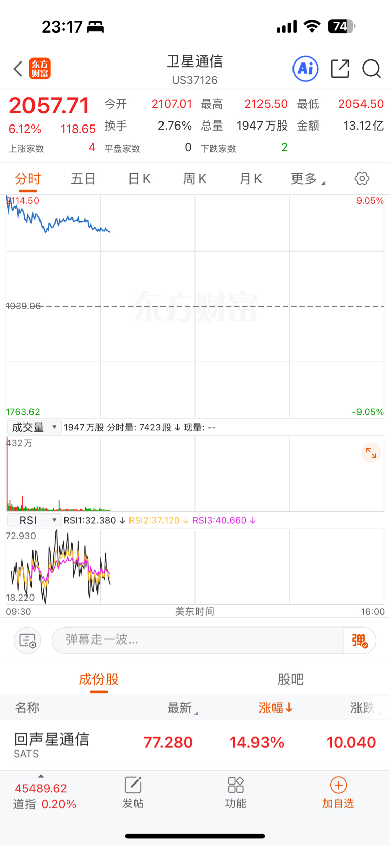 美股卫星通信板块大涨