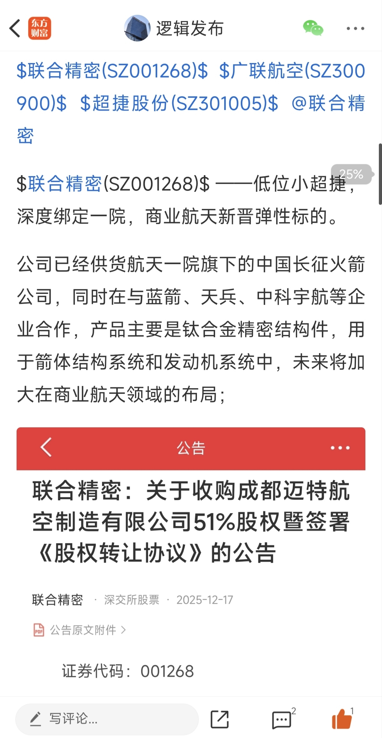 联合精密——目前正宗商业航天小市值未爆炒的票