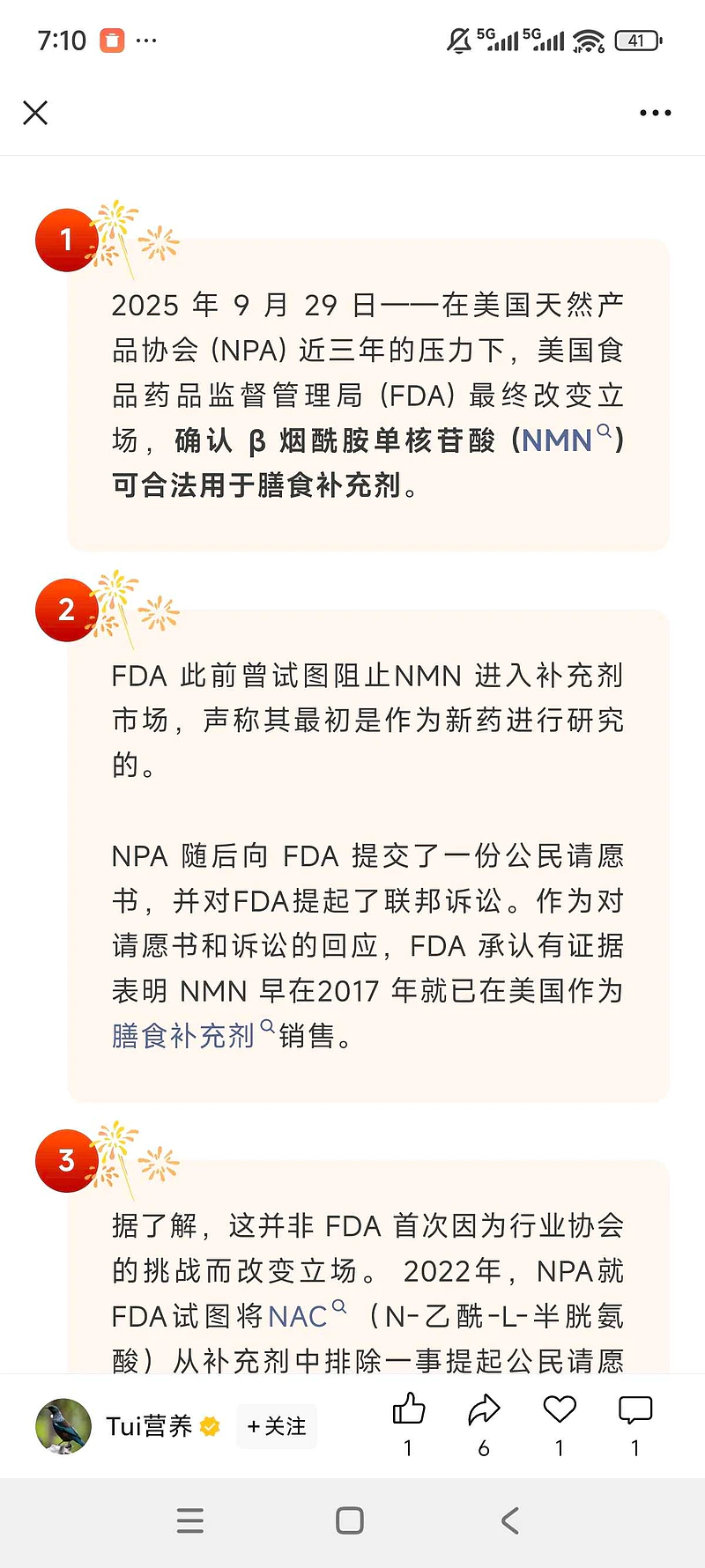 2025 年 9 月 29 日——在美国天然产品协会 (NPA) 近三年的压力下,美国食品药品监督管理局 (FDA) 最终改变立场,确认 烟酰胺单核苷酸 (NMN) 可合法用于膳食补充剂