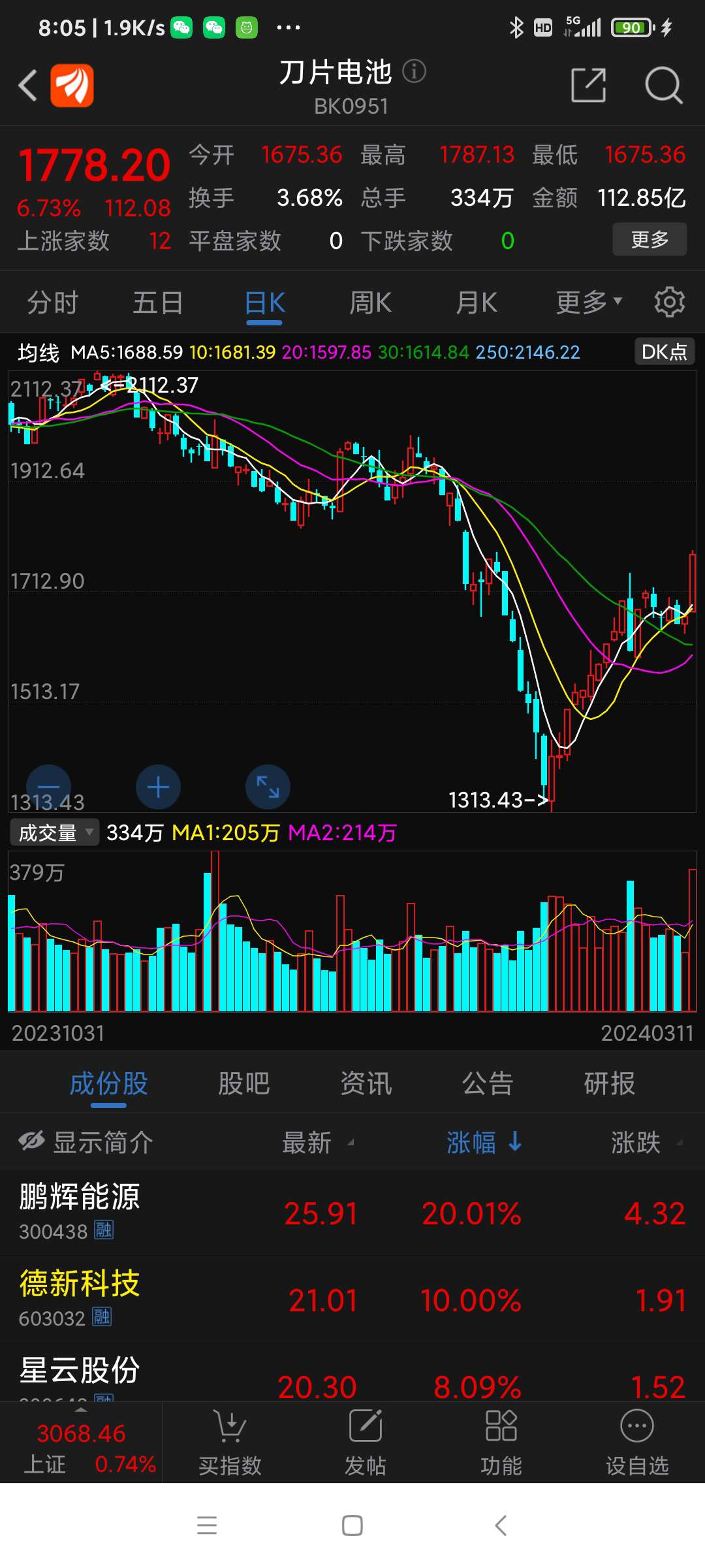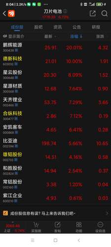 刀片电池2股涨停板