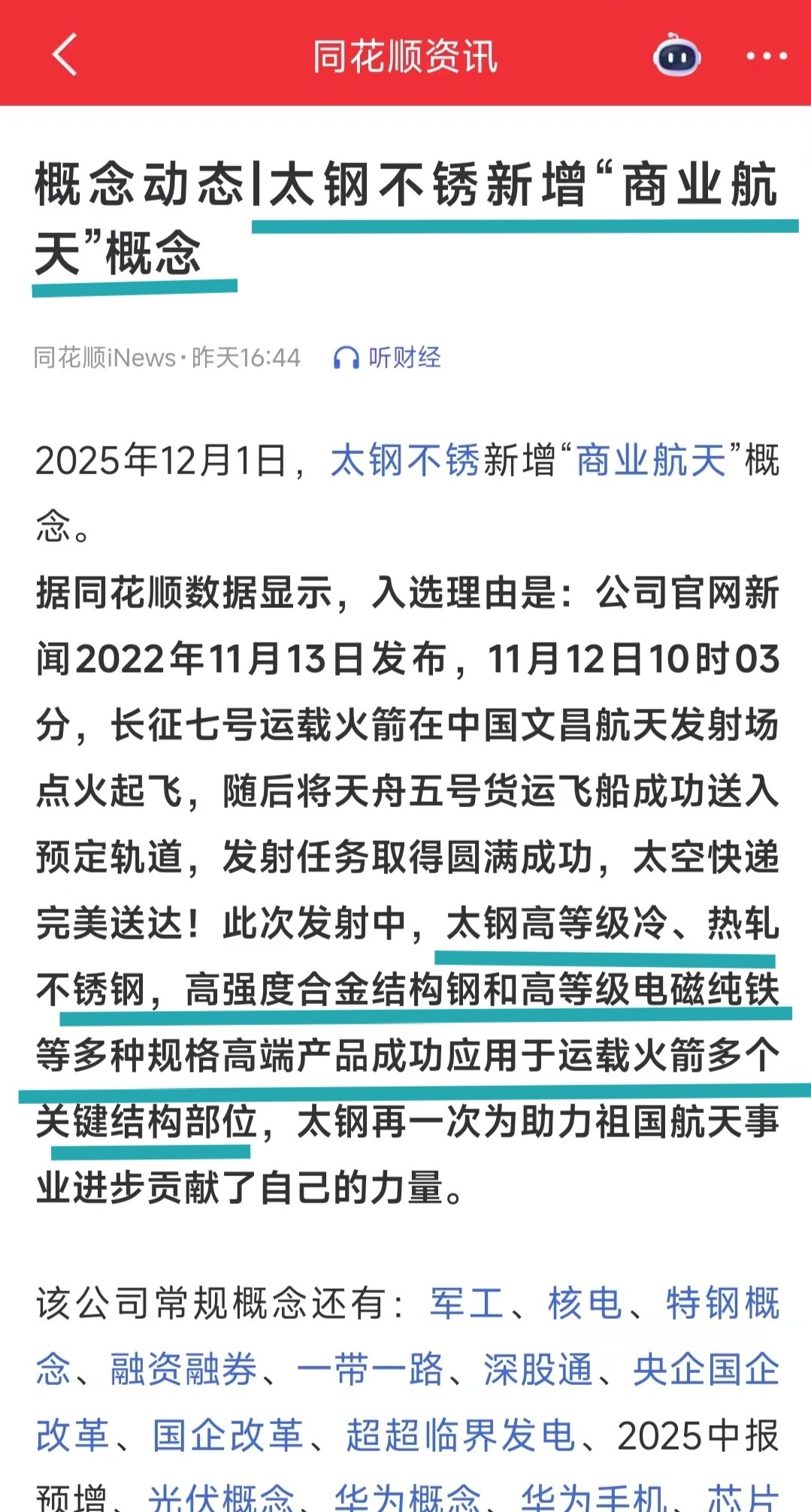 $商业航天(BK0963)$ 太钢不锈昨天“同花顺”进入今天该概念……值得期待!