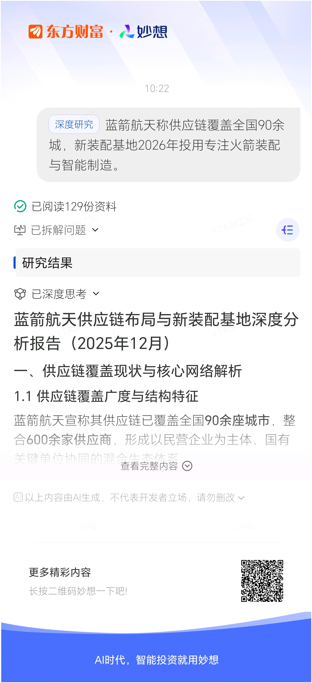 #@妙想,你怎么看?# 妙想一下:蓝箭航天称供应链覆盖全国90余城,新装配基地2026年投用专注火箭装配与智能制造。