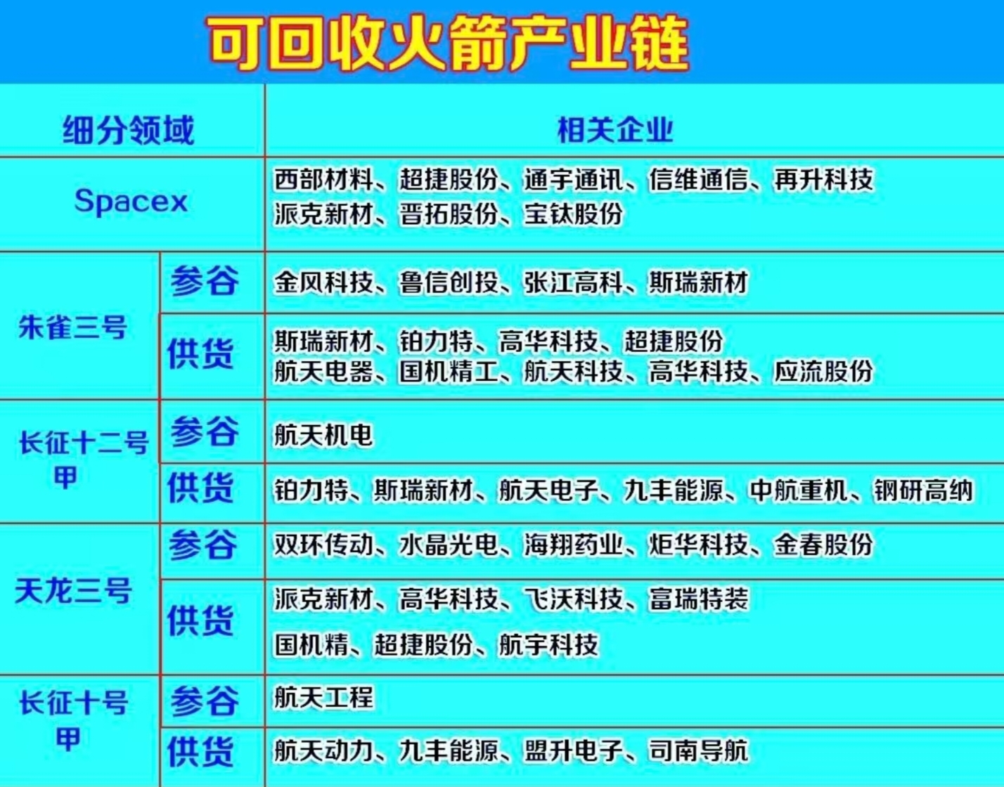 可回收火箭产业链,你看好谁?