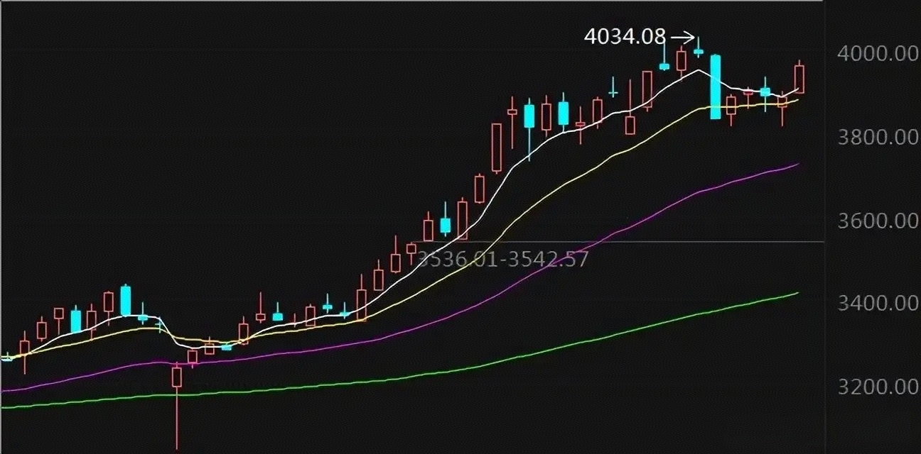 之所以玫瑰这么认为,主要还是因为目前这几个月的宽幅调整,还是没有完全到位,这连续8个交易日的上涨固然看起来很漂亮,但这并不代表新一轮行情就要启动了,至少未来的几周时间还会出现反复,不排除再次回落到3820-3850这个区域,再来回震荡个一两次,那么才初步具备启动新的波段行情的条件,基础才相对比较牢固。因此后续短期趋势一旦走弱,短线仓位该调整也是要及时进行调整。
