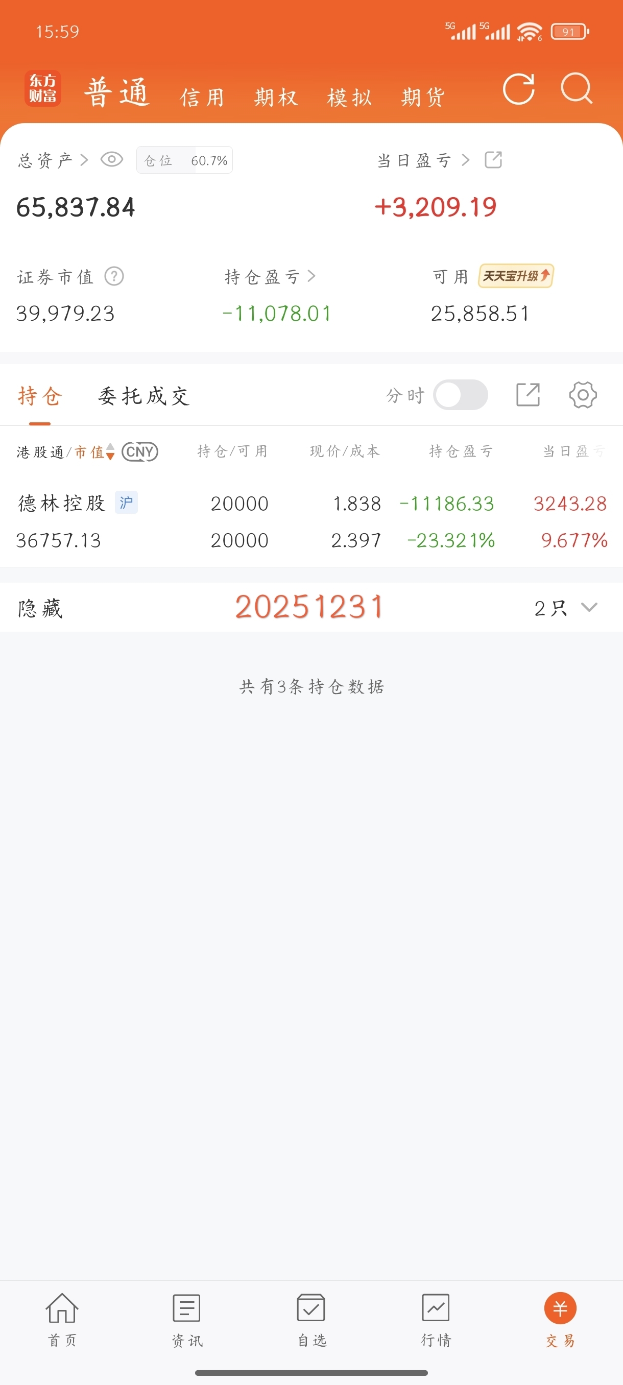 交易感悟:今年我个人的收益也很一般,虽然账户一度收回成本,但最近三个月又还给了市场。有时候很无奈,不是自己不努力。今年以来,我坚持每天发布个人的投资感悟,花在研究投资上的时间并不少。面对十年来最好的行情,却没有把握住机会。分析原因有多方面的,想赚快钱,但总把握不准节奏。想赚大钱,却也选不到长期持有的牛股。最近也连续止损了多只股票,这其中也有表现比较好的股票。以今天20%涨停的久之洋为例,该股连续两天大跌,如果按照我的短线策略,肯定是要止损的,但没想到今天它又涨停了,股价再创收盘价历史新高。难道因为这只股的不同表现就否定技术分析不行吗?事实上很多技术指标是可行的。就拿很多人常用的MACD指标来说,金叉买死叉卖在多数情况下是能赚钱的。短线股用来赚快钱,长线股用来赚大钱。但今年我的长线股也表现不好,持有的德林控股今天早盘开盘后大幅拉升一度涨超30%,但没想到最终还是跳水了,收盘最终只有不到10%的收益。本来该股今天有望回本,结果市场是残酷的,可能也有的人追高进去了,今天就会面临大幅亏损。今年已经过去了,懊悔遗憾都无济于事。只有好好反省自己的问题,努力克服投资上的弱点,相信总会苦尽甘来。山海寻梦,不觉其远;前路迢迢,阔步而行!希望2026年在投资上能有更大的进步!