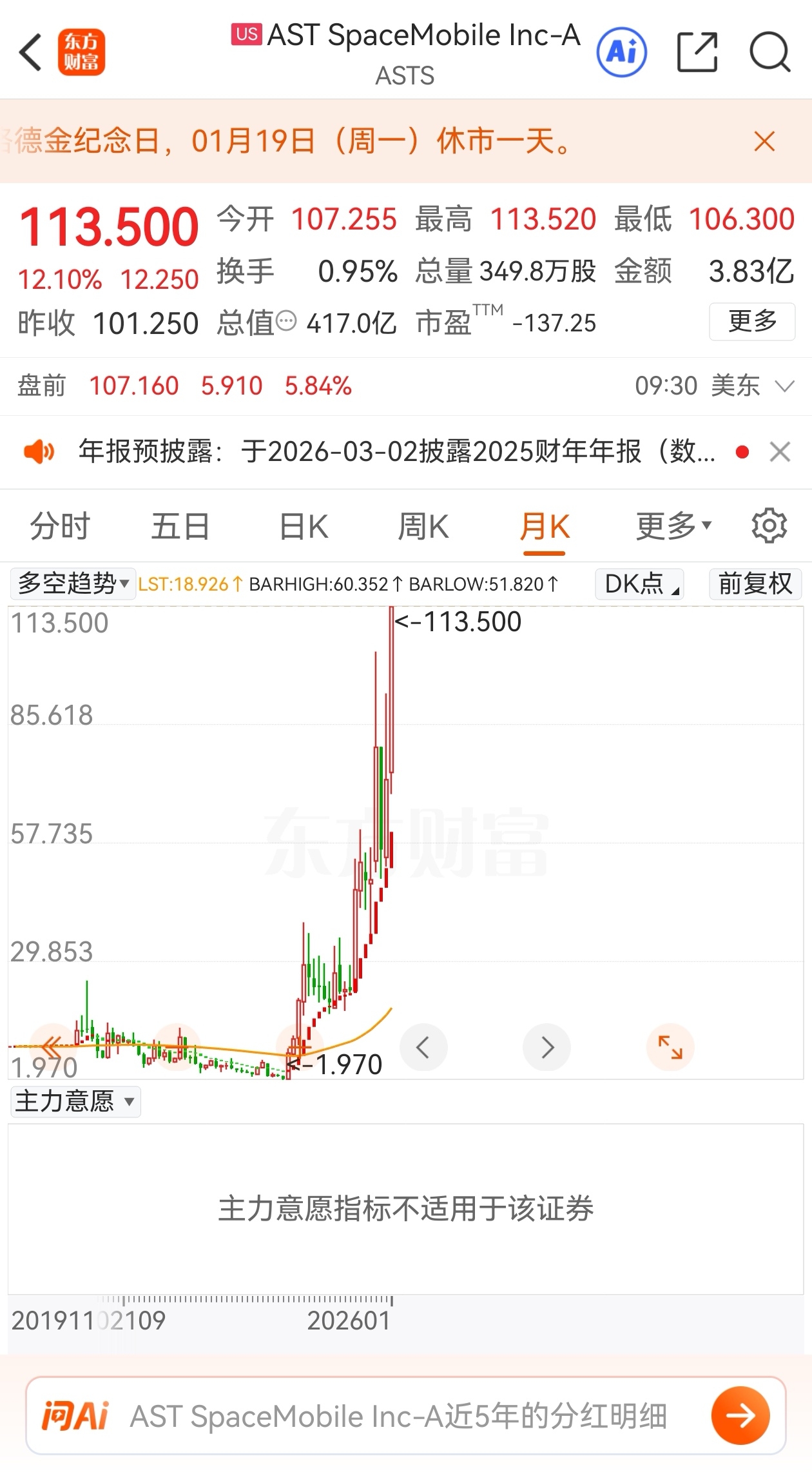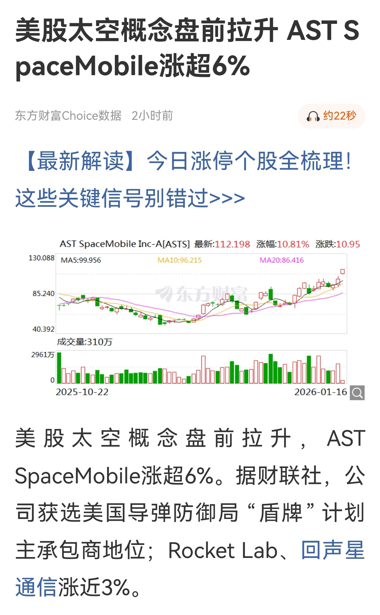 美国太空股AST今晚狂涨!标题跟不上它上涨的速度!