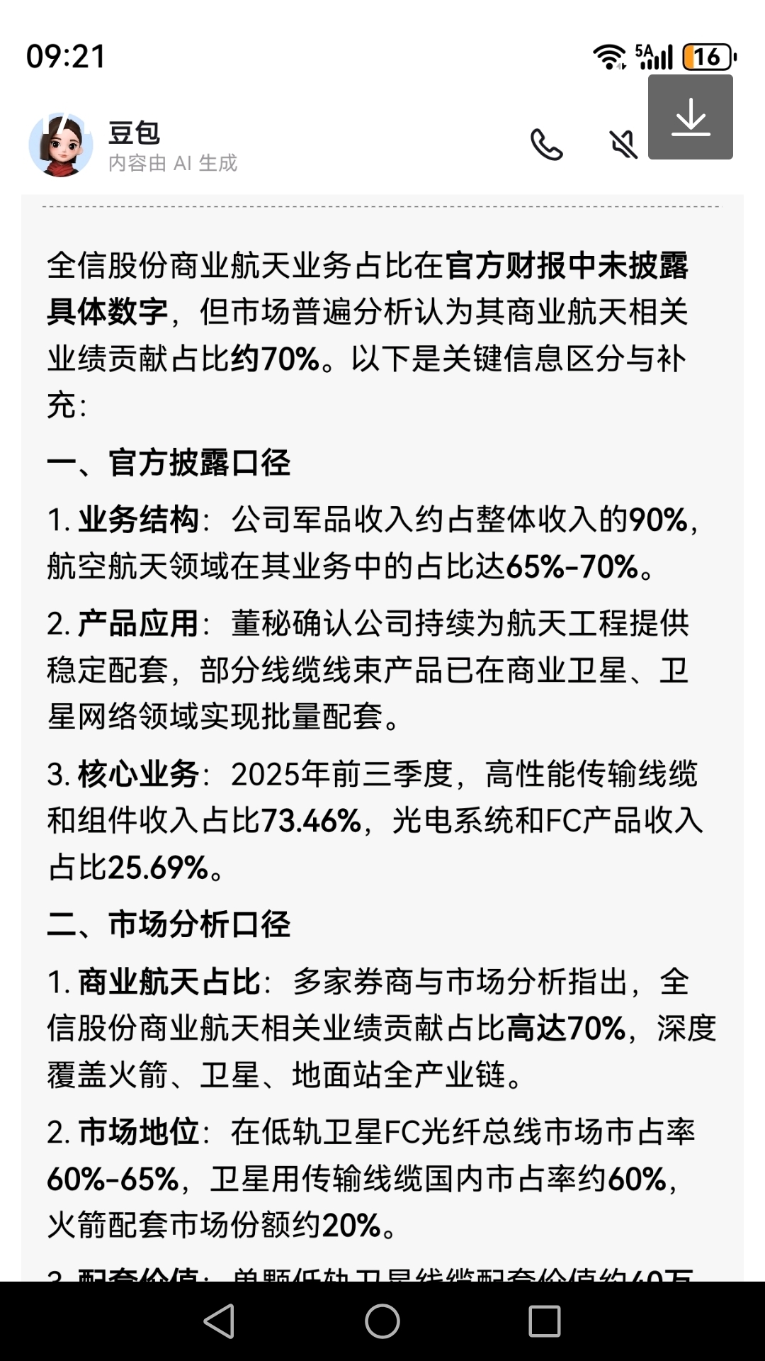 $商业航天(BK0963)$ 300447全信股份,其主要业务收入为航空航天与卫星互联网,是一只真正的商业航天股,价格底,牌子正,近期主力借板块调整大幅虚势,是一只难得的潜力品种,试目一待。