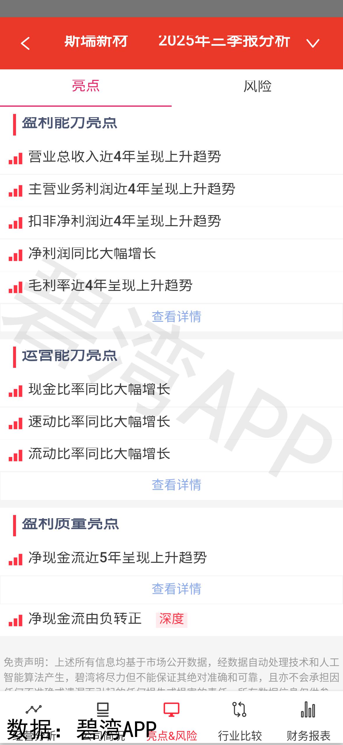 斯瑞新材2025年一季度净利润增长32.76%,主因主营业务利润提升30.45%及其他收益大增60.38%,但需警惕净现金流由正转负,同比下降180.35%。现金流恶化源于筹资活动净额下降35.90%,其中利息支付激增837.36%,叠加投资支出增长38.12%。虽盈利改善,但现金流压力凸显,需关注后续资本开支与债务管理能力。