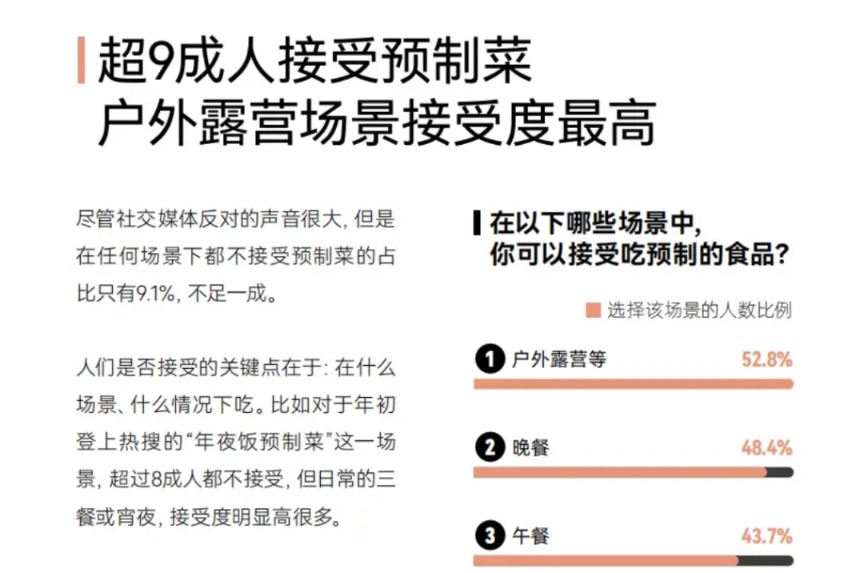 据第一财经发布的《年轻人如何看待预制菜洞察报告》数据,超过90%的年轻人对预制菜持接受态度。
