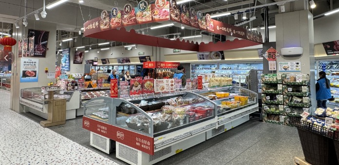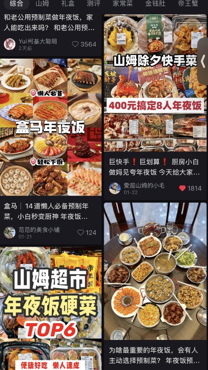 近日,蓝鲸新闻记者走访盒马、山姆等线下门店发现,大量年夜饭预制菜被摆上货架,商家甚至设立了预制菜专区供消费者挑选。