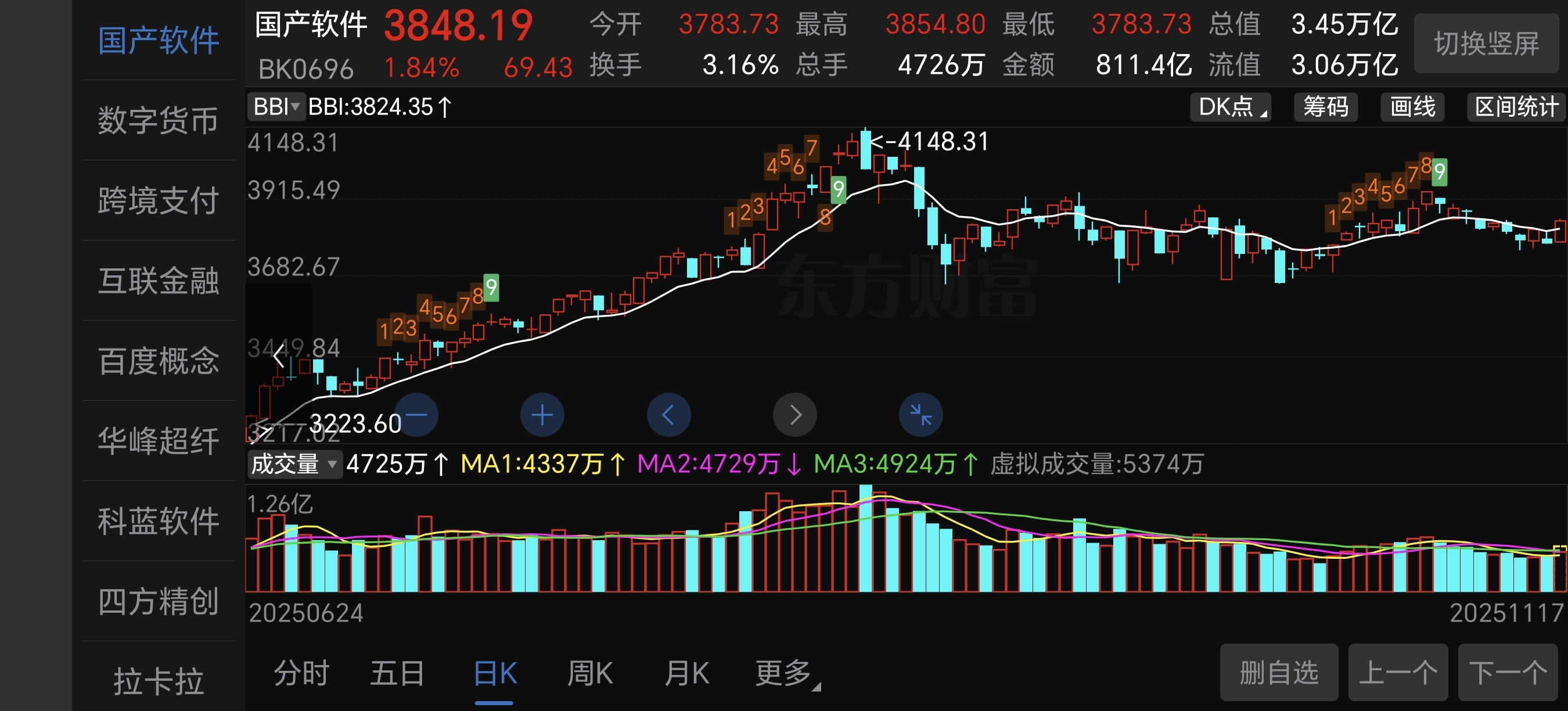 $华为欧拉(BK1013)$ 软件板块已经再次站上日级别趋势线,超跌的不少今天封上涨停,导致板块有望成为市场热点的争夺选手,欧拉虽然还差一点,但是也是属于震荡下沿位置,明天后天观察持续性,正所谓事不过三,这次是高位下来第四次尝试扭转趋势,今日逆势走强,值得期待,个股可以择机进攻,目标依然是超跌的,一言不合就一阳穿N线
