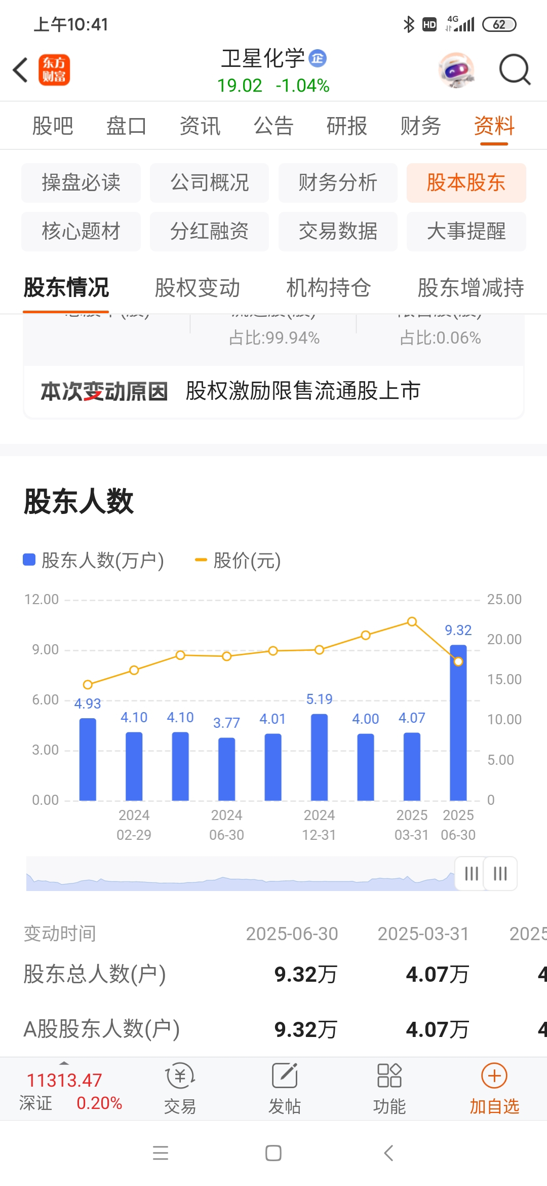 卫星化学股东人数增加128%!利多还是利空?