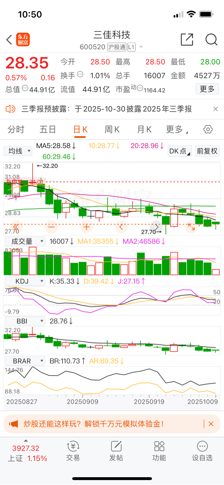 半导体跌三佳科技就没涨过天天跌、谁在背后搞它这是、唉、牛市亏三十多了、快一年了拿
