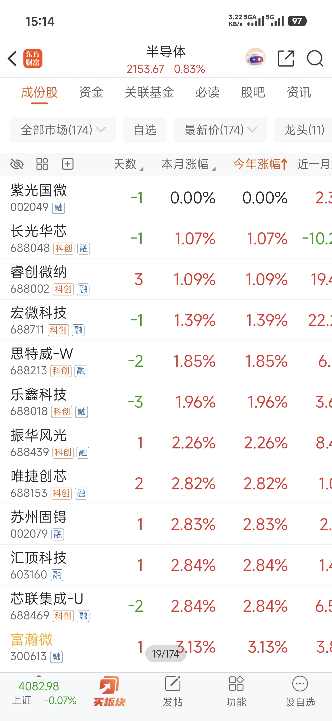 $半导体(BK1036)$ 今年涨幅继续向倒数第一冲刺,现在排倒数第19