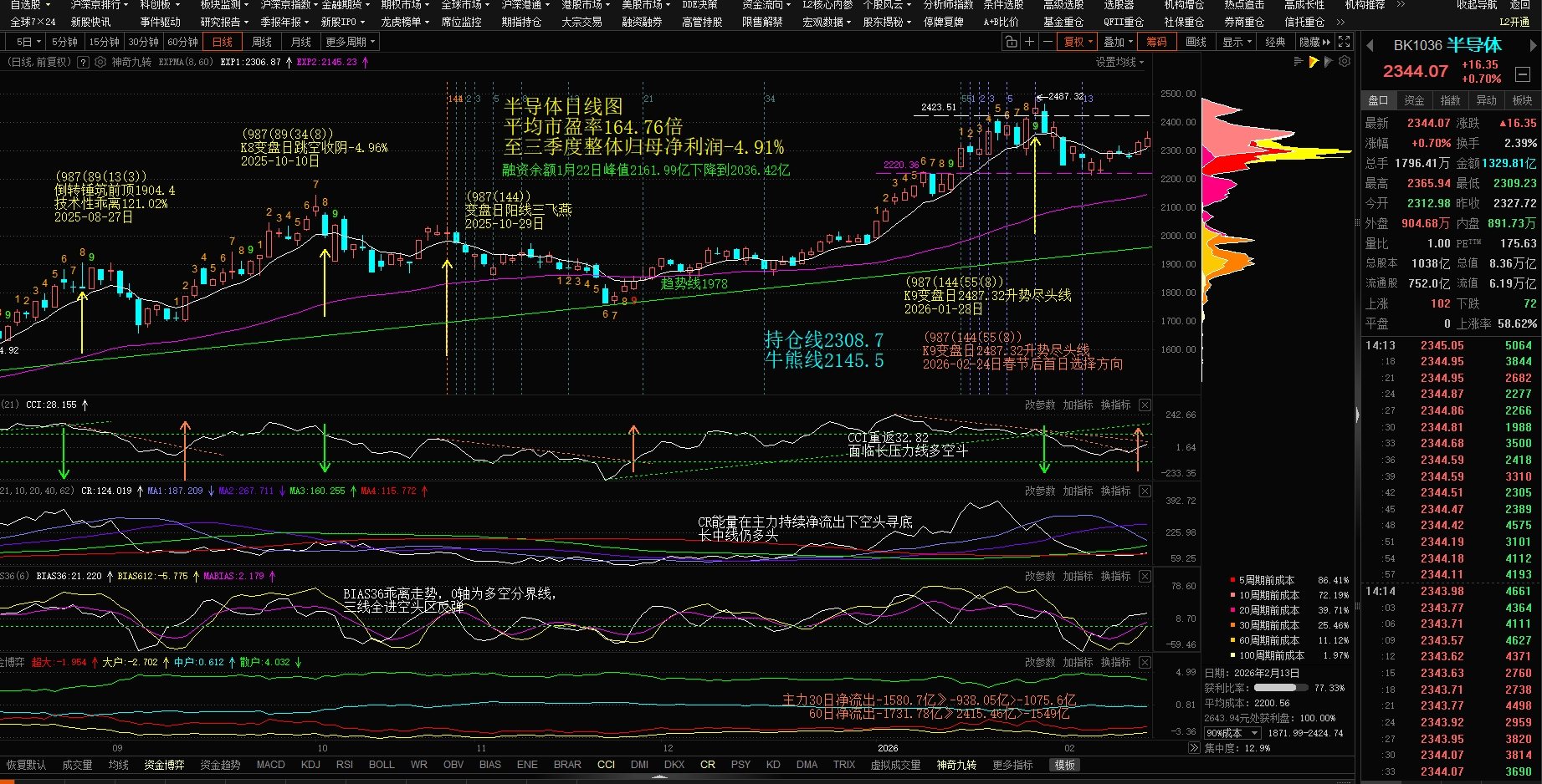 半导体和光刻机板块运作的主力资金流一直是顶背离净流出,1月28日创新高后震荡回调7日,主力再拉升7日欲构筑双顶,所以今天低开仍顽强拉升,分时图明显主力在13:52时再次诱多出货。
