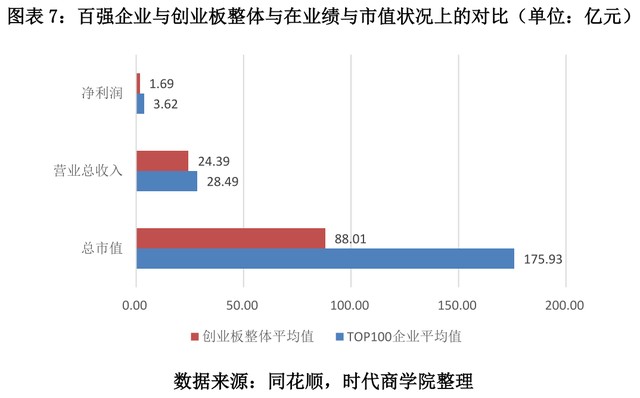 图表7:百强企业与创业板整体与在业绩与市值状况上的对比(单位:亿元)