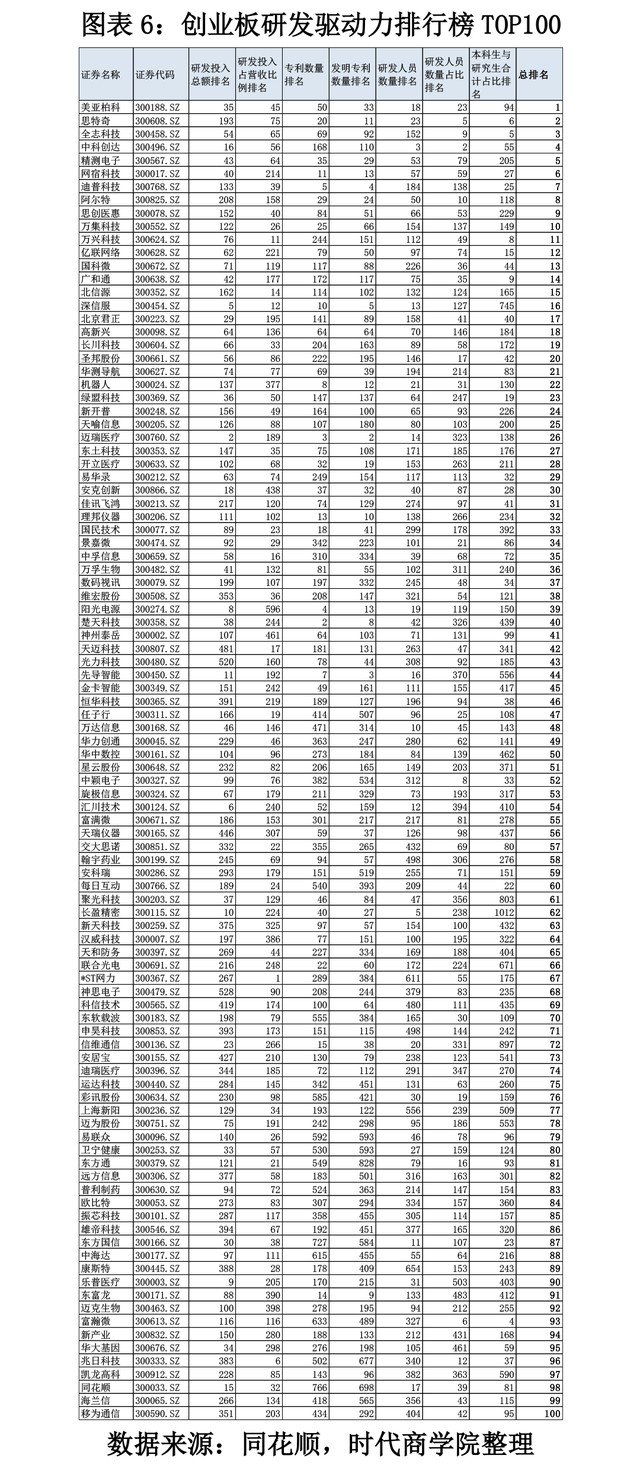 图表6:创业板研发驱动力排行榜TOP100