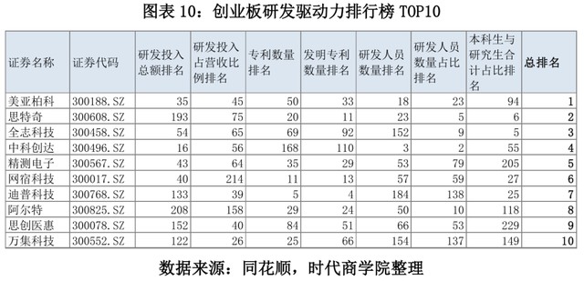 图表10:创业板研发驱动力排行榜TOP10