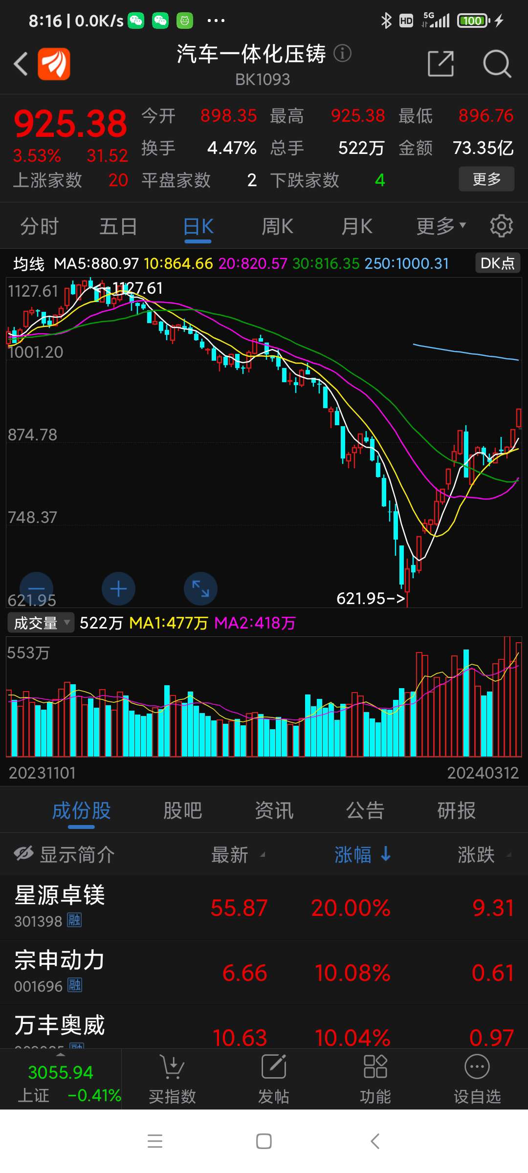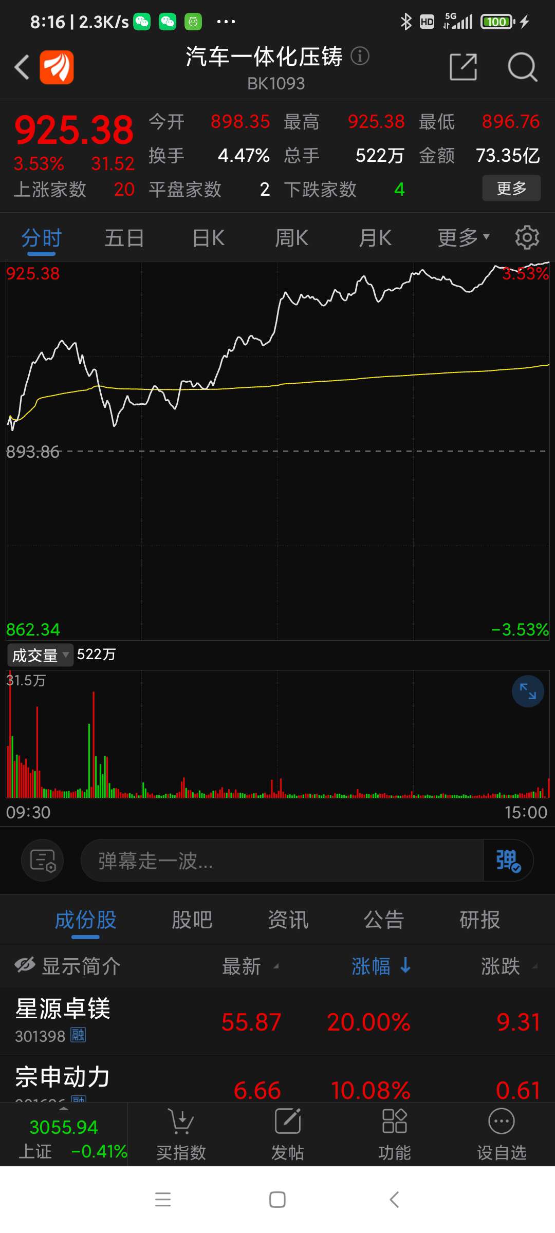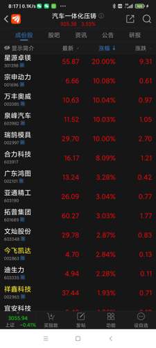 汽车压铸一体化,5股涨停,少见,板块净流入2.77亿