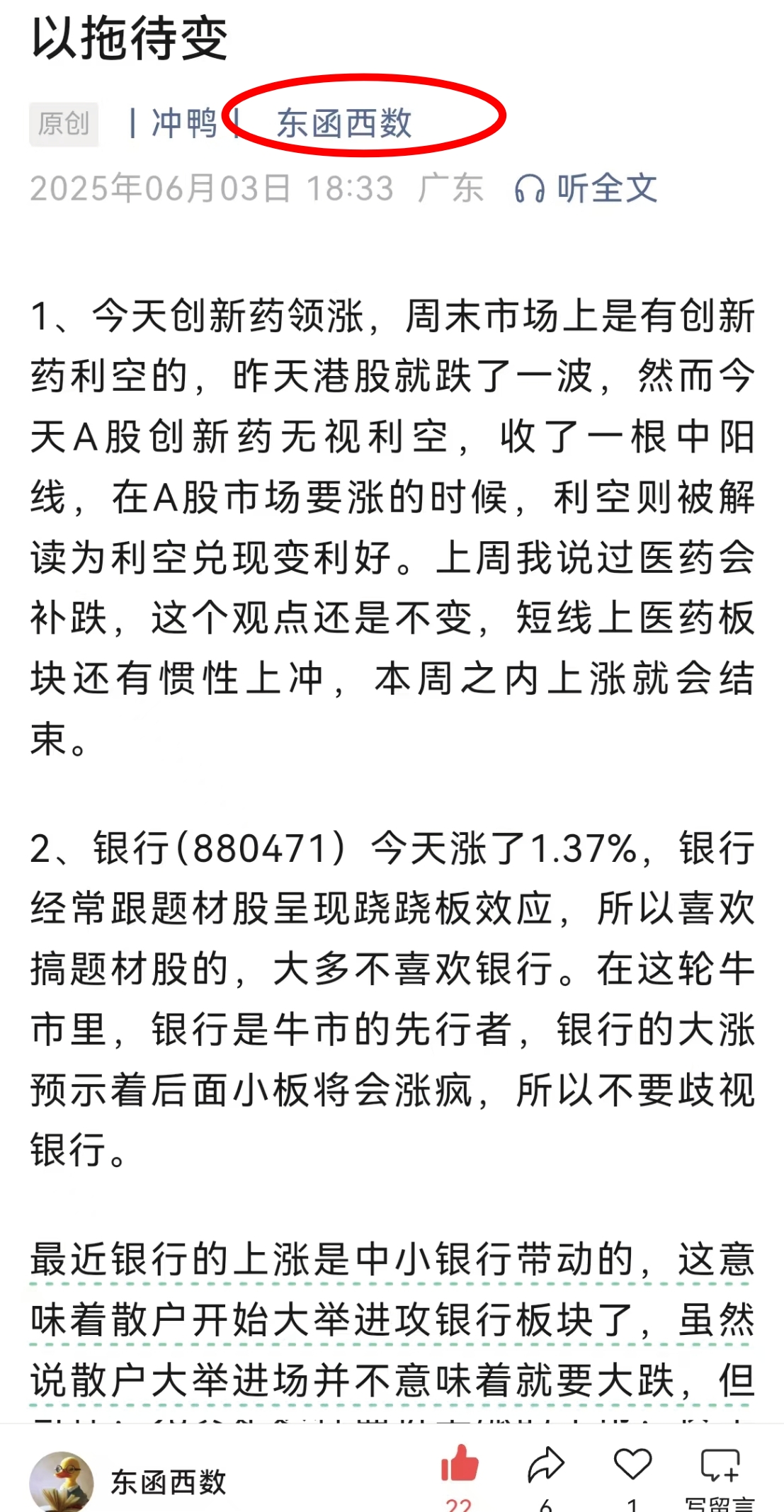 最近银行的上涨是中小银行带动的,这意味着散户开始大举进攻银行板块了,虽然说散户大举进场并不意味着就要大跌,但是出现这种信号是要有警觉的。#收盘点评# #炒股日记# #复盘记录# #BD交易狂飙!中国创新药席卷全球# $创新药(BK1106)$ #银行股持续新高,未来还能走多远?# $沪农商行(SH601825)$ $渝农商行(SH601077)$ $兴业银行(SH601166)$