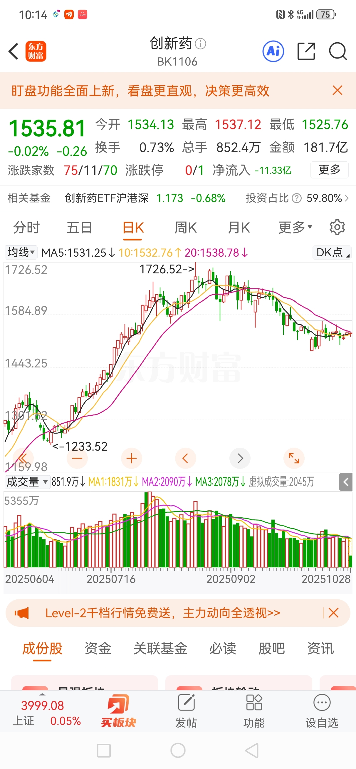 经过两个月的调整,创新药指数马上将突破20日线。