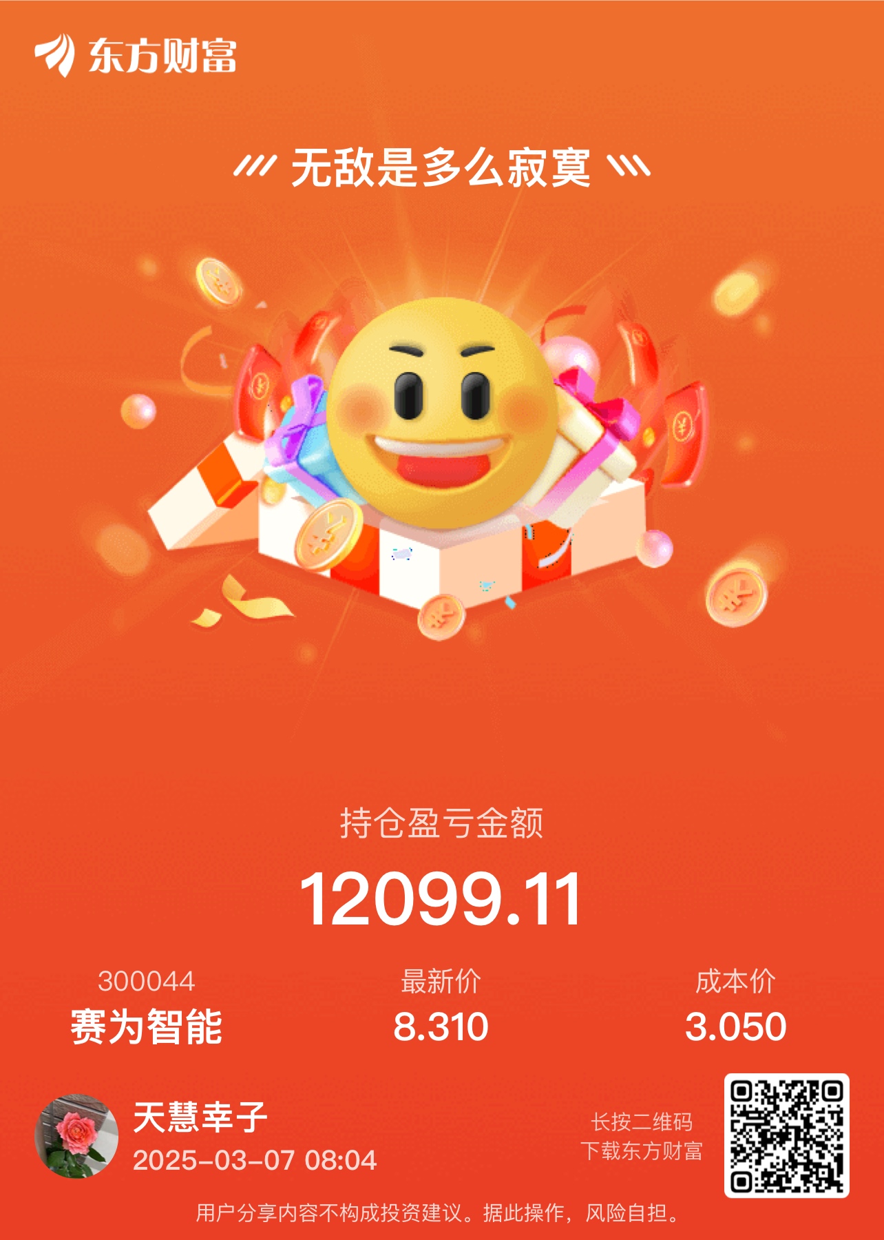 温馨提示: 1.根据《证券法》规定,禁止编造、传播虚假信息或者误导性信息,扰乱证券市场;2.用户在本社区发表的所有资料、言论等仅代表个人观点,与本网站立场无关,不对您构成任何投资建议。用户应基于自己的独立判断,自行决定证券投资并承担相应风险。《东方财富社区管理规定》