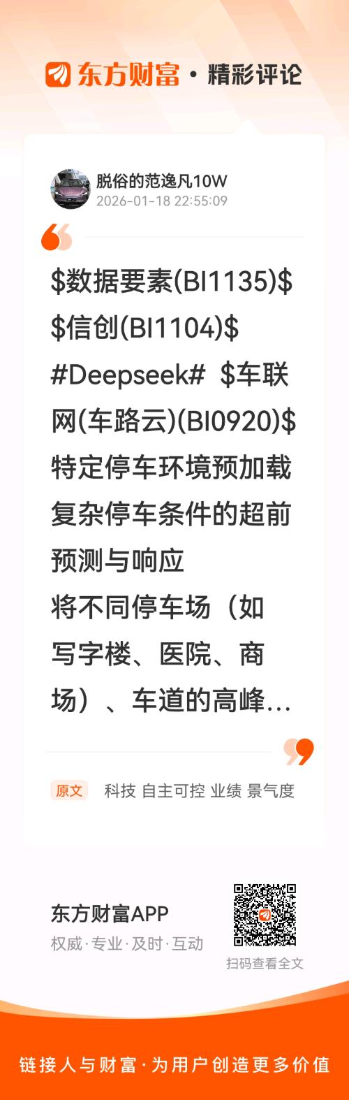 特定停车环境预加载 @幻方量化 @鸿蒙智行 //@脱俗的范逸凡10W : $数据要素(BI1135)$ $信创(BI1104)$#Deepseek# $车联网(车路云)(BI0920)$特定停车环境预加载 复杂停车条件的超前预测与响应将不同停车场(如写字楼、医院、商场)、车道的高峰时段、车位尺度限制、充电桩、预约规则、洗车养护等信息作为Deepseek V4的Engram架构“记忆”。在生成调度建议时,可提前检索停车场和车道信息,预判可能出现的瓶颈,给出包含可行停车方案的端到端规划。