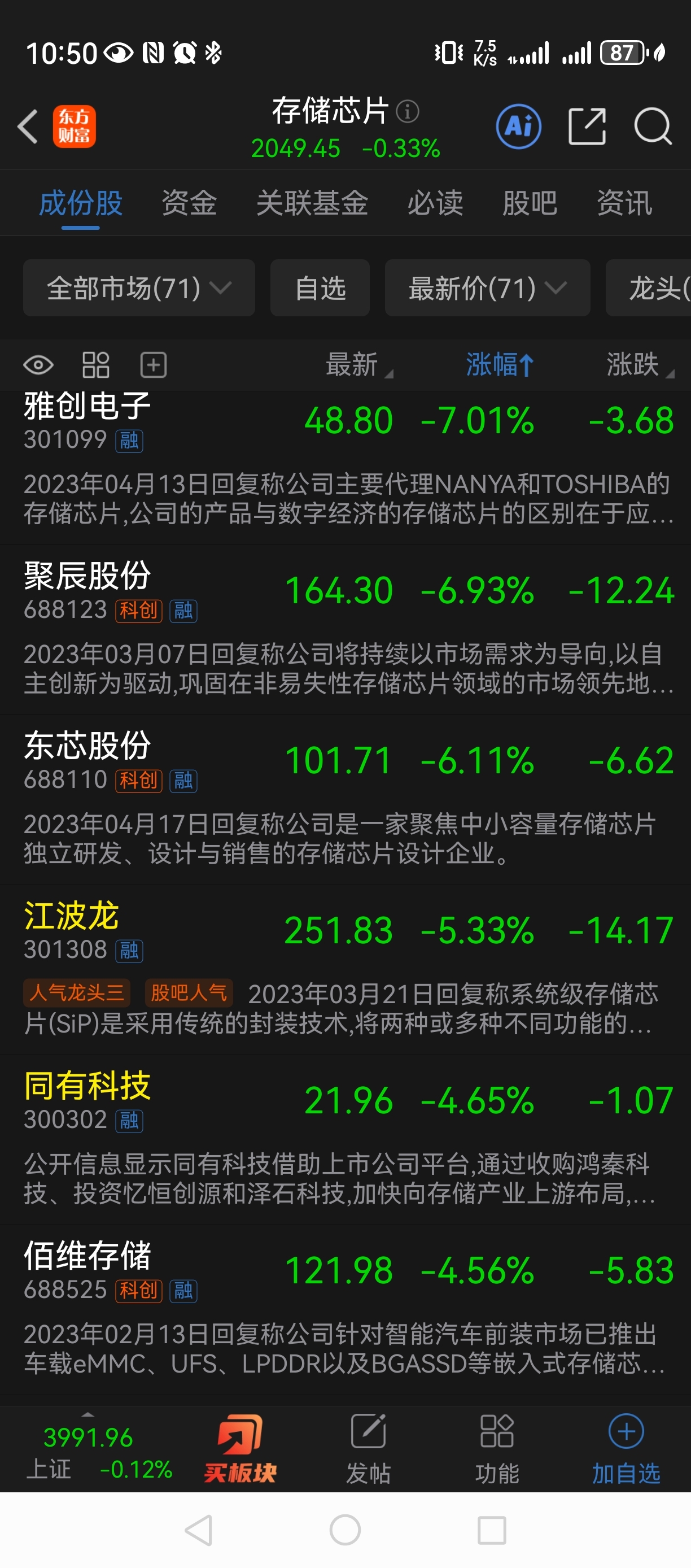 $存储芯片(BK1137)$ 下跌又是倒数,上涨都是冲高回落后排