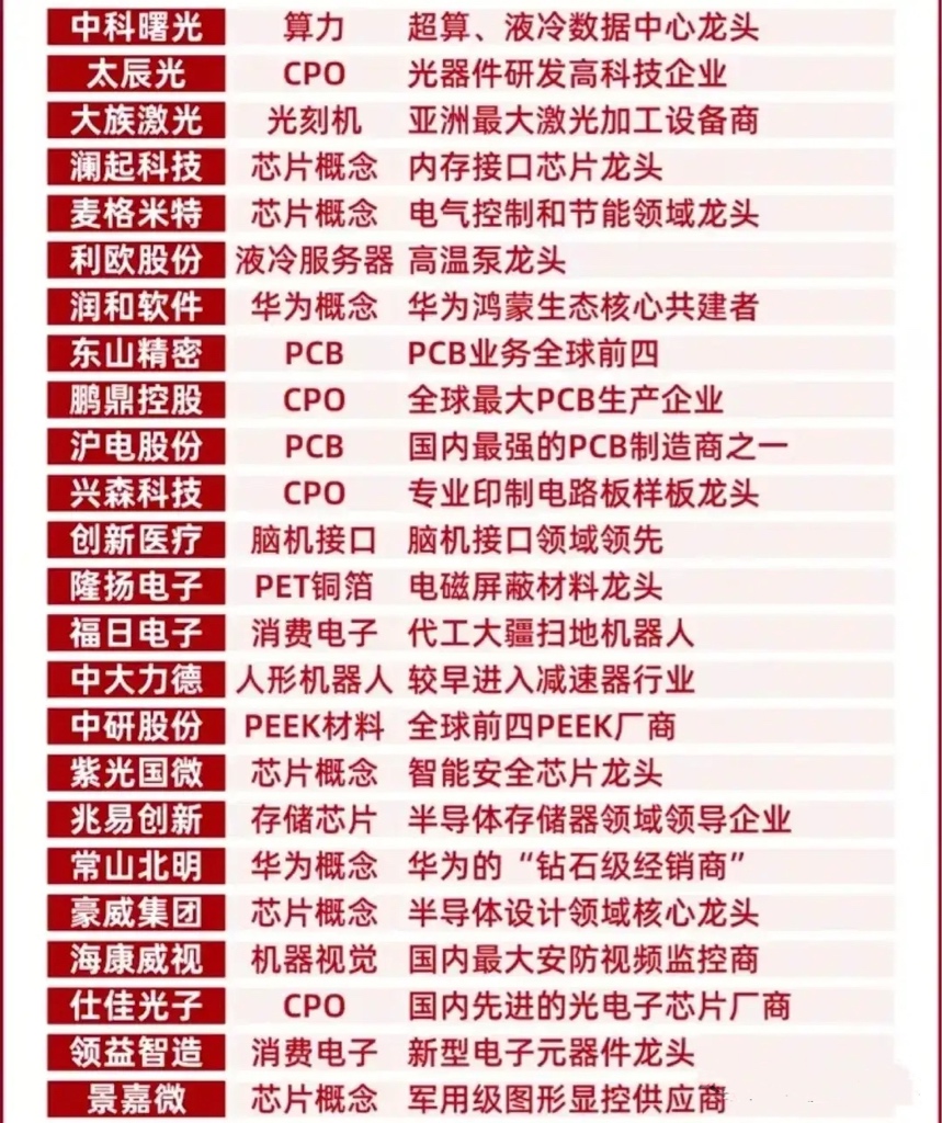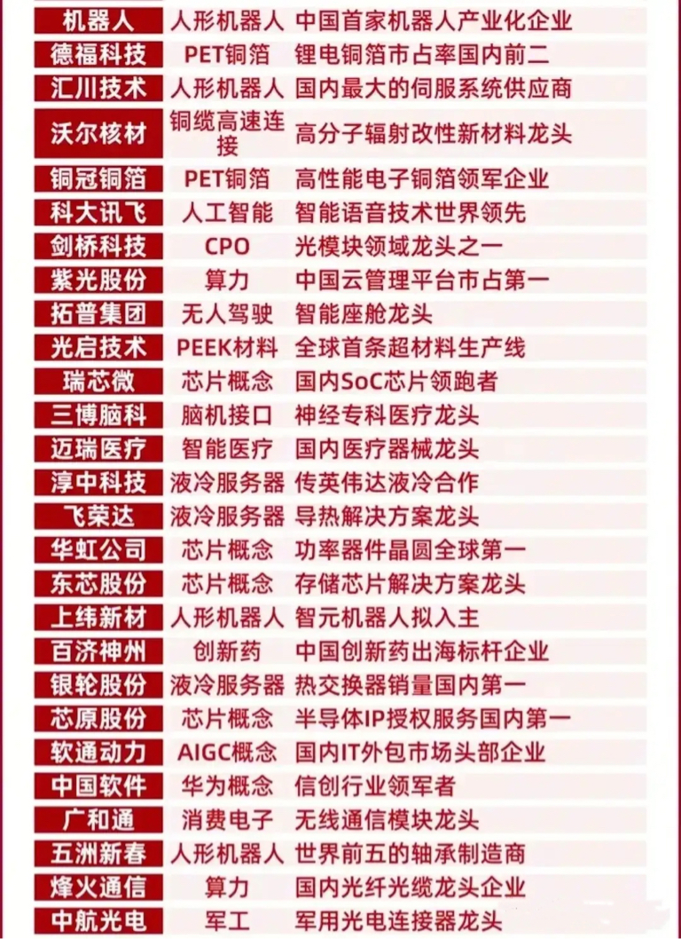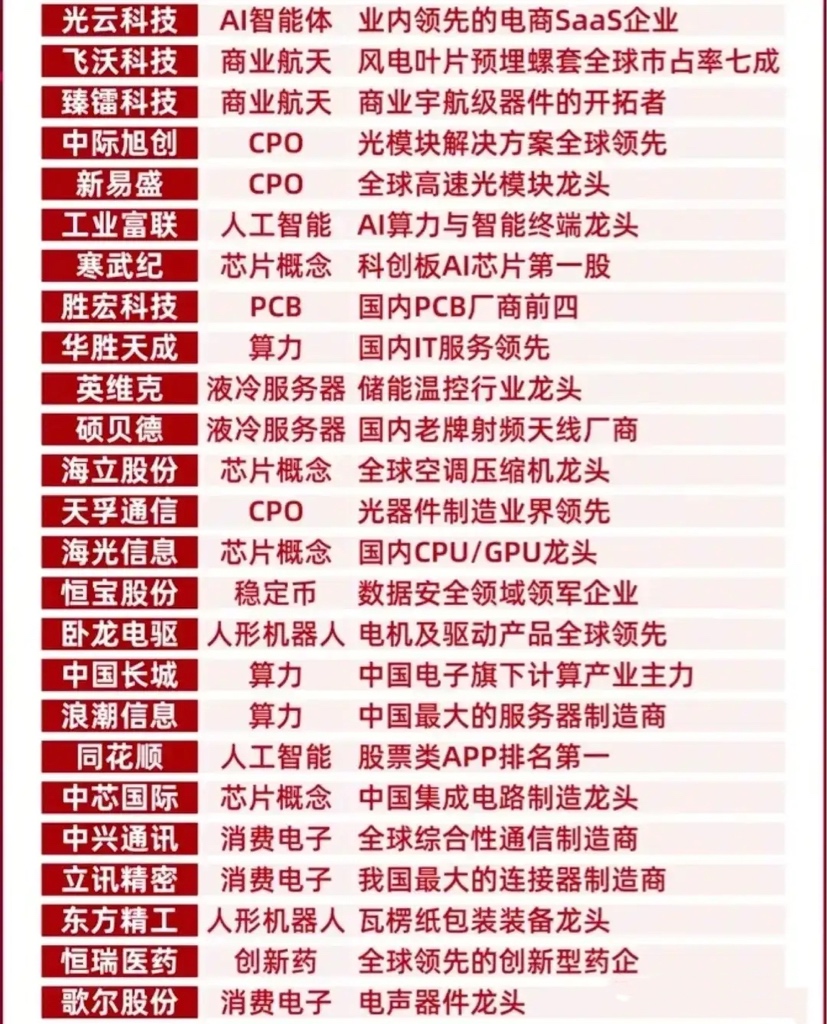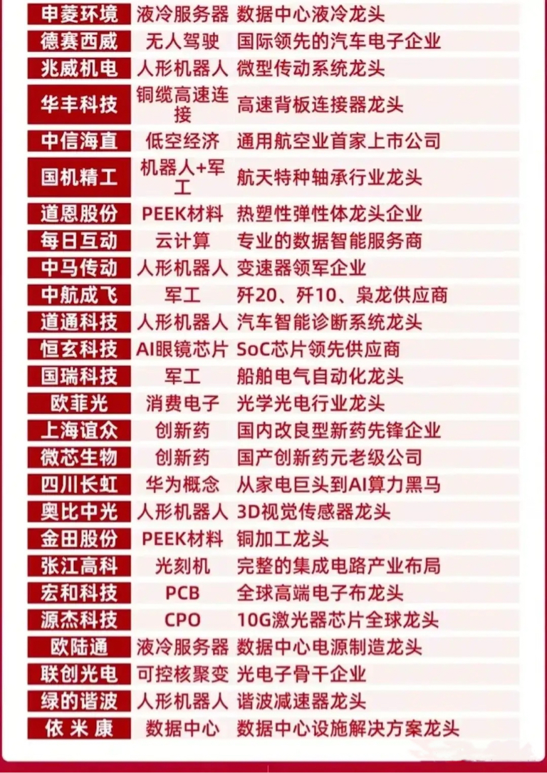 郑重提示:请勿将本名单当作炒股秘籍!A股市场波动风险较大,即便头部龙头,也可能面临黑天鹅冲击、业绩不及预期或估值合理回调,我方仅做信息整理分享,不保障任何投资收益,投资决策自主判断,盈亏由个人承担,入市请擦亮双眼、谨慎抉择
