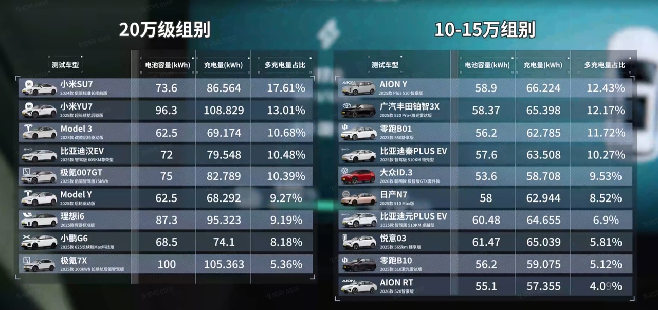 最终结果是小米YU7(超长续航后驱版)以420公里实测续航位列全场第一;小米SU7则以54.86%的续航达成率,在20万元级车型中排名第一。特斯拉Model 3和Model Y能耗控制领先,百公里电耗分别为20.8kWh和21.8kWh。可以说小米这两款车真的非常厉害,那些质疑小米汽车的人应该闭嘴了吧!