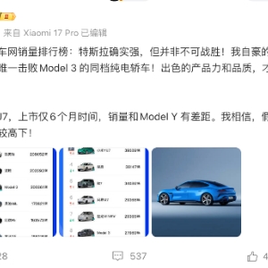 尽管如此,小米创始人雷军依然自信满满,他表示,“特斯拉确实强,但并非不可战胜!”雷军表示,看了易车网销量排行榜,令他自豪的是,SU7是迄今为止唯一击败Model 3的同档纯电轿车。这么看来,你还真不得不承认小米确实牛逼,至少对标特斯拉而不落入下风。