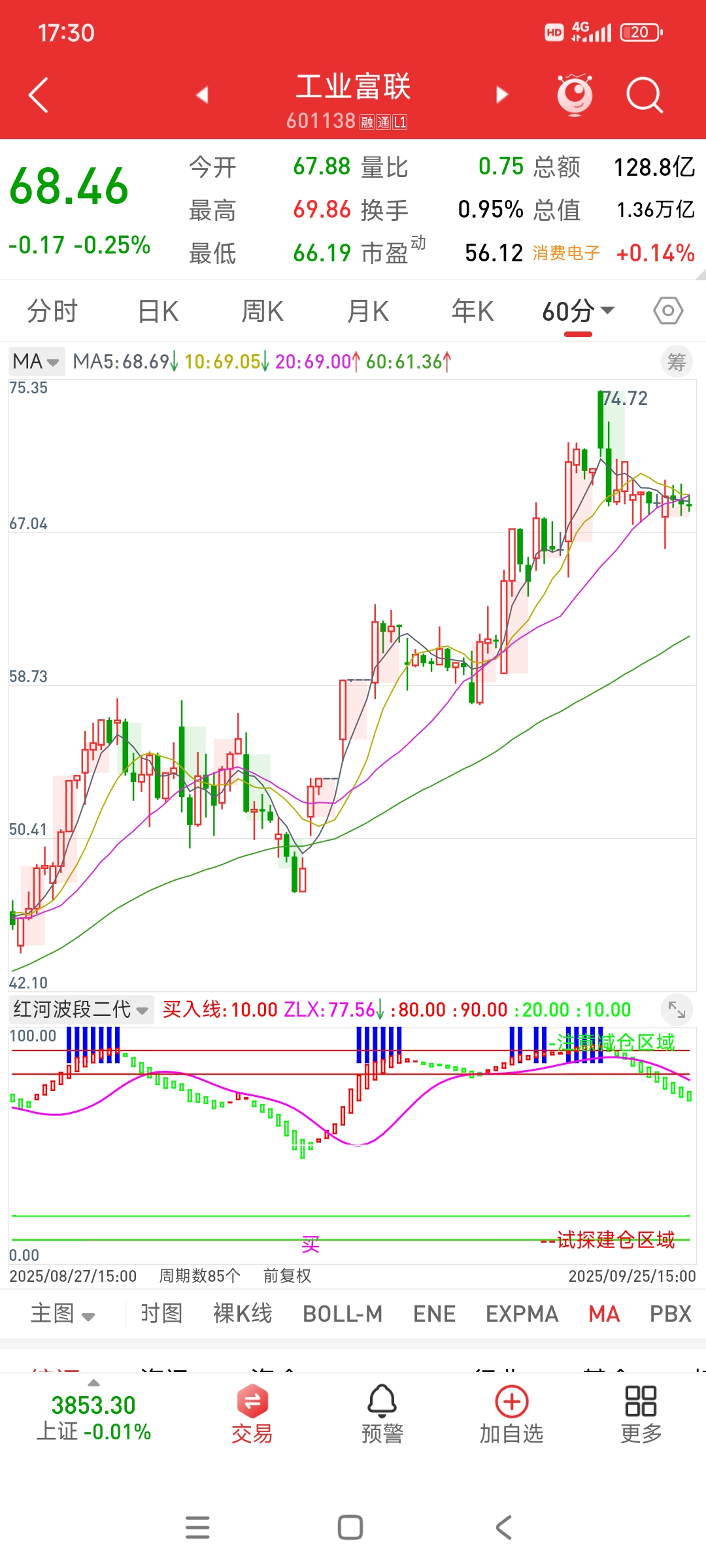 周线缩短叠加日线和60分钟线绿柱,这里要注意风险l。绿柱不停,回调不止,绿柱拉长