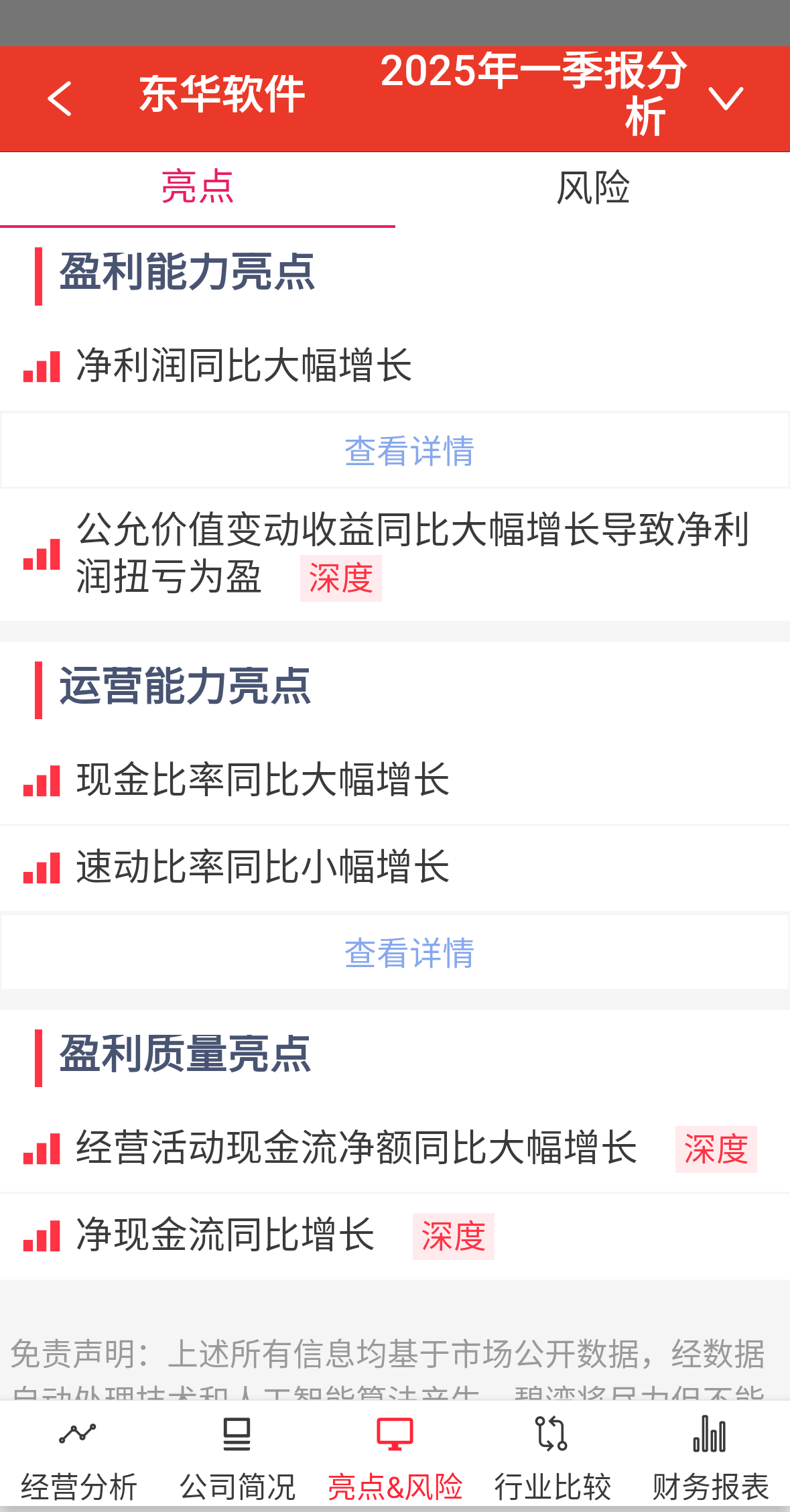 东华软件一季度净利润扭亏为盈,主要得益于公允价值变动收益亏损收窄,但核心利润同比下滑74.85%,反映主业盈利能力承压。经营活动现金流改善显著,因采购支出减少推动净现金流增长26.98%。需警惕扣非净利润大幅下降60.9%的持续盈利风险,及筹资现金流由正转负对债务结构的潜在影响。估值修复依赖于AI医疗业务能否对冲传统业务衰退。