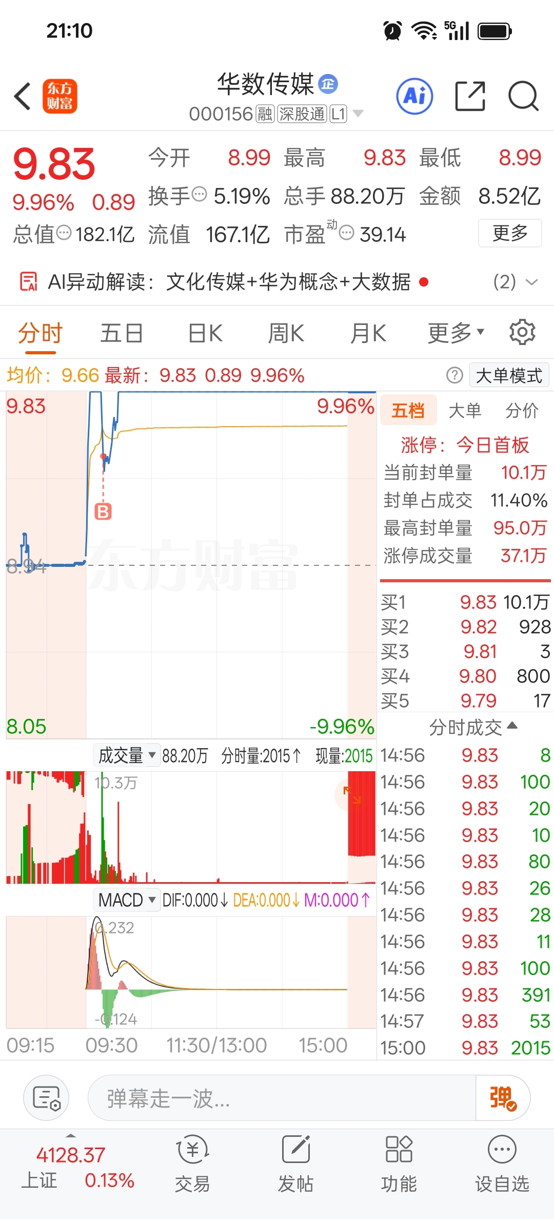 华数传媒,炸板我的最爱,吃完溢价,嘴角抹油,开溜
