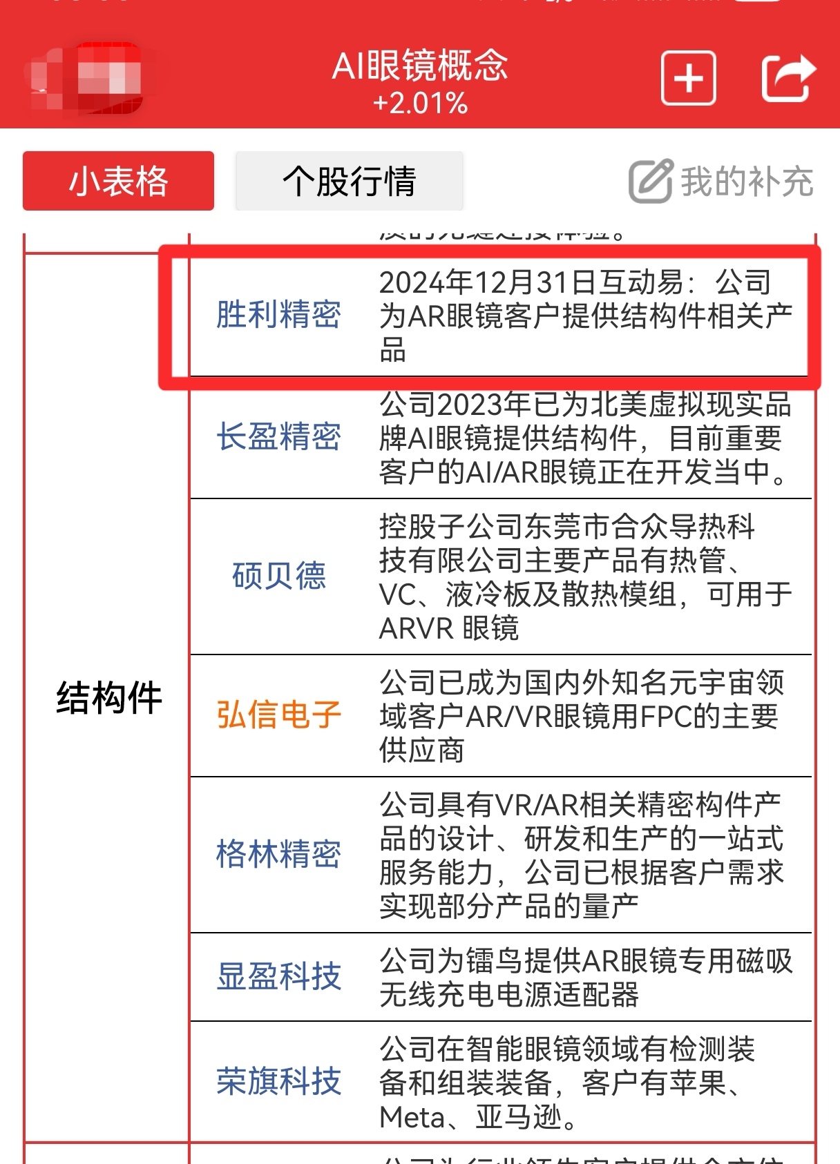 蓝思科技耶,灵伴科技的核心供应商。提及AR眼镜,灵伴科技是最靓的仔,一个都不能少