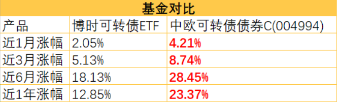 要想不用担心市场大风大浪,那还得是$中欧可转债债券C(OTCFUND|004994)$。这基表现一直比较强势,近一年涨了23.37%,可转债ETF近一年就只有12.85%,准备长期持有中欧可转债债券C了。