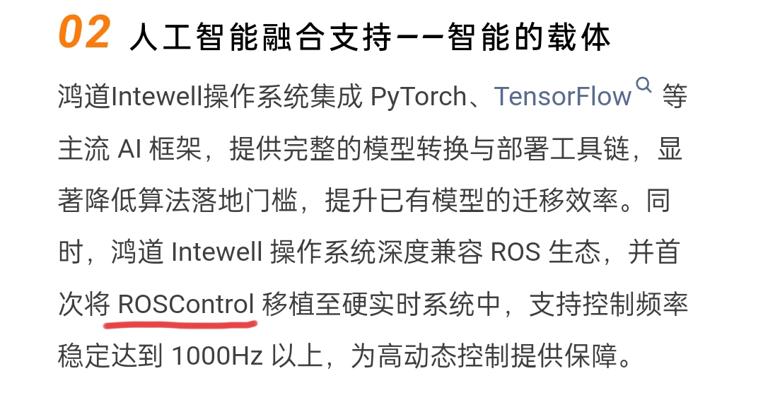 一条被忽视的重磅消息:鸿道操作系统首次把 ROSControl 移植至硬实时系统中。实现了操作系统与ROS的融合,使机器人应用功能开发快速高效。