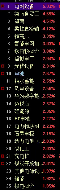 值得注意的是,近期表现相对出色的“老登”板块,其走势或符合政策导向预期。今日电网概念板块表现强劲,以特变电工为代表的相关企业,以及储能、虚拟电厂、风电、电池等细分领域均有显著涨幅。从产业逻辑来看,电力作为科技发展的基础支撑,无论人工智能等新兴技术如何演进,其稳定供应都是不可或缺的要素。从国际视角观察,部分海外地区人工智能设备因电力供应不足而运行受限,这进一步凸显了电力保障对于科技产业发展的重要性。因此,电网领域的特高压传输等技术以及各类电力相关产业的上涨,具有坚实的产业支撑逻辑,在今日的板块排名中表现突出。