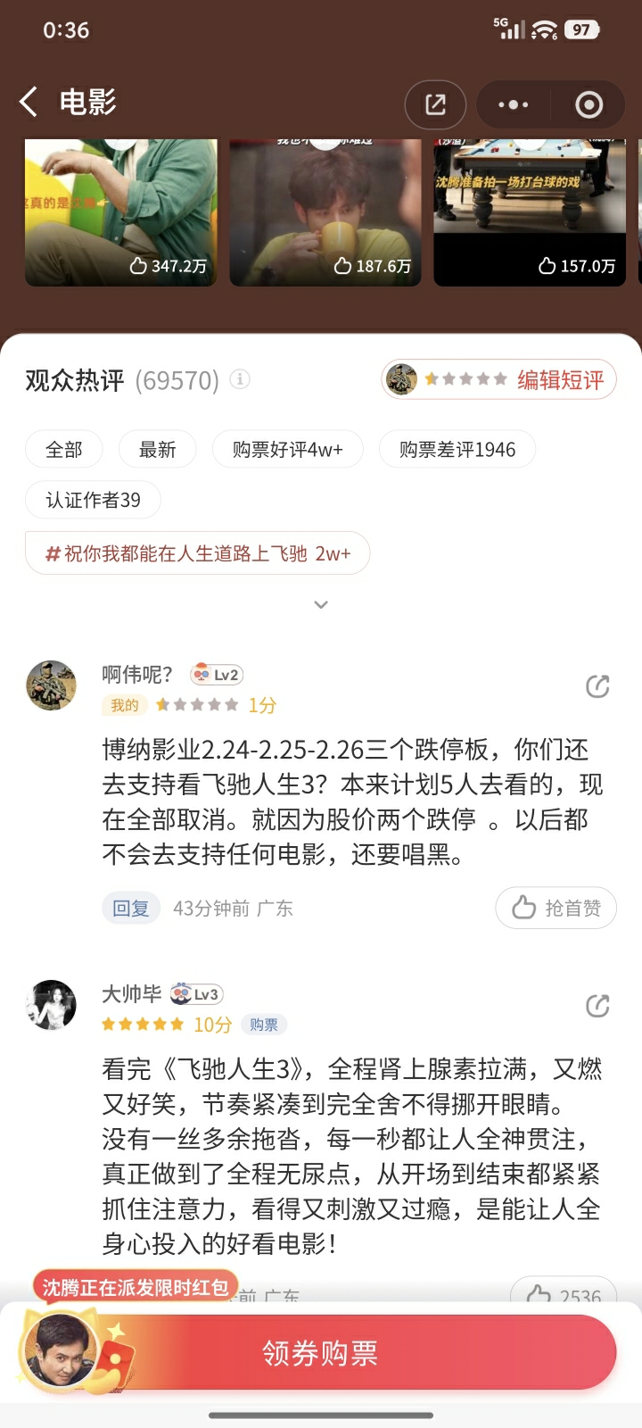 无耻无耻无耻!!!!!见不得影院挣钱,票房刚好点就砸盘!!!!一点格局都没有,汪