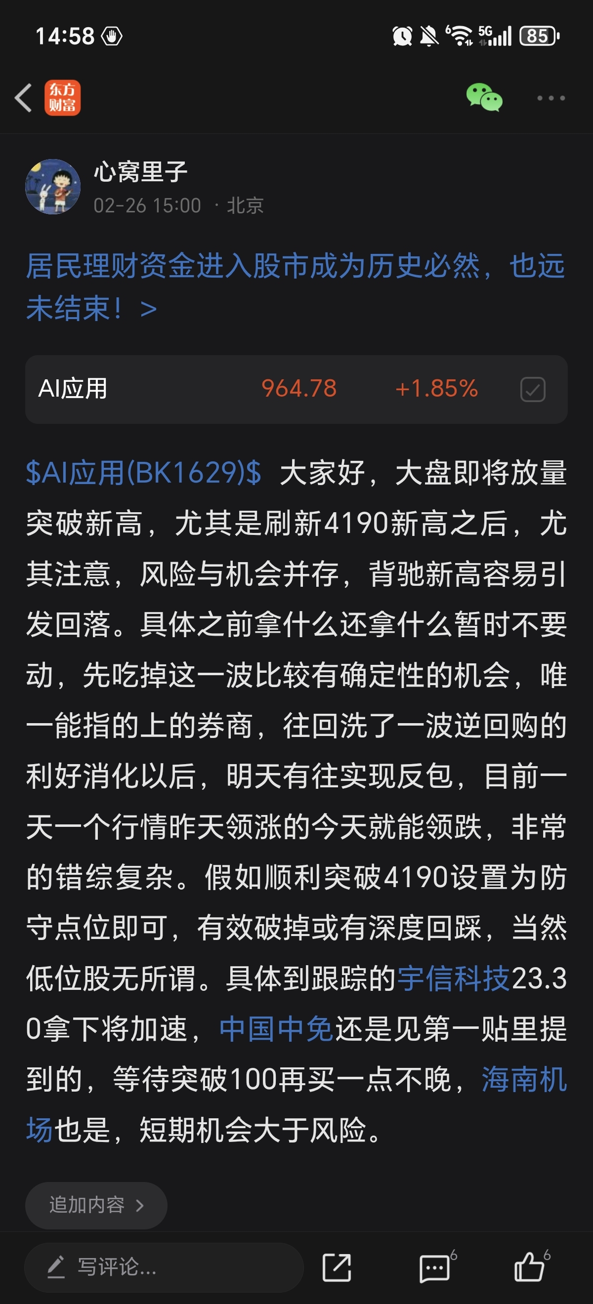 $AI应用(BK1629)$ 大家好,一切尽在掌握,不突破4190没有风险,突破了打起精神,辨别高点。另外,智能体替代软件论个人已经在第一时间解释过,这里注意观点反转的可能,毕竟软件公司减员增效,支出少了,效率还高了,挣钱岂不是更多更快了?