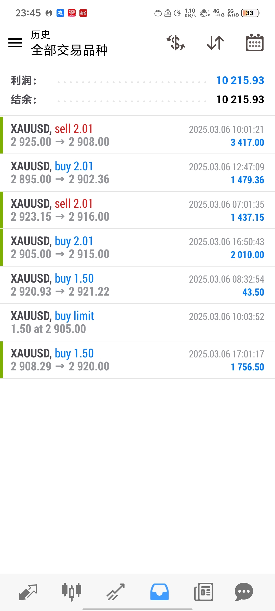 加上早盘2923/25空单分别16/08止盈离场拿下15个点