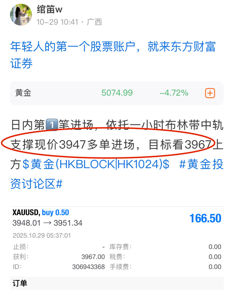日内第1⃣笔止盈,现价3968上方,3948多目标位3968实现,止盈离场收下2