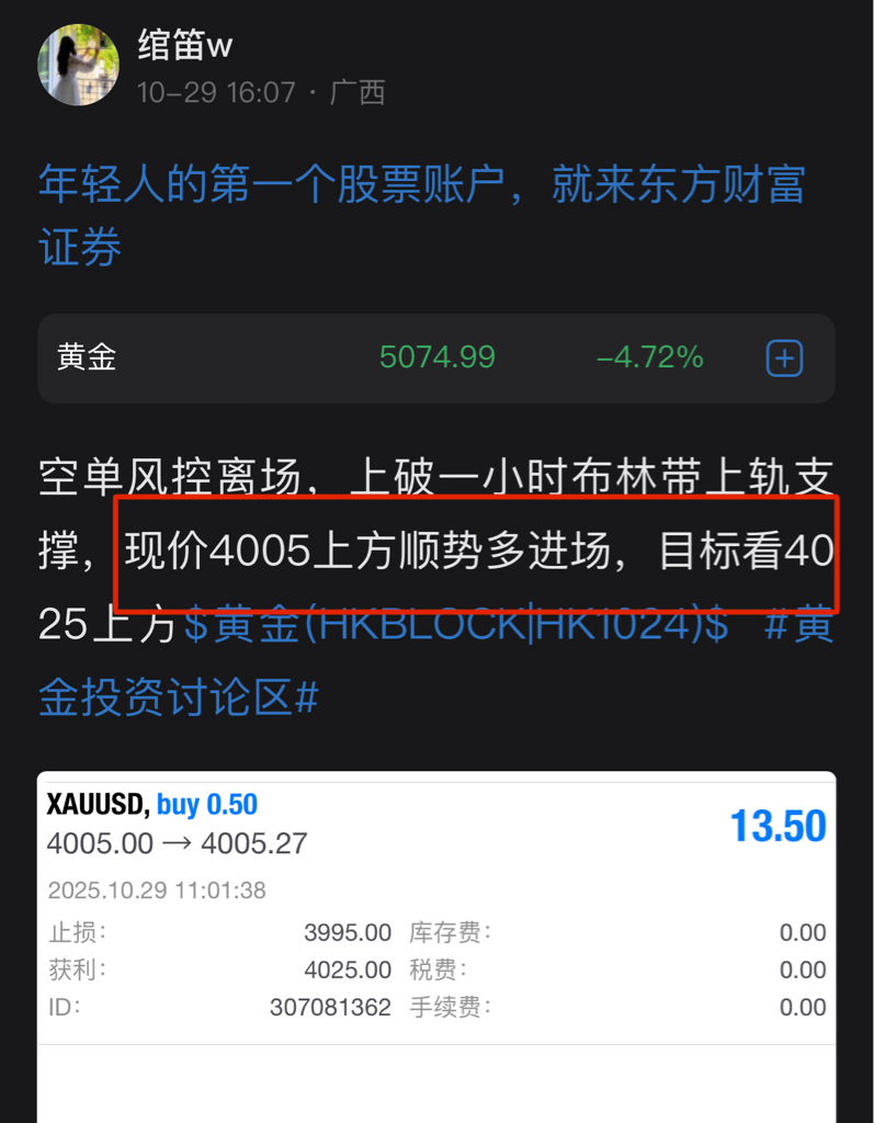 日内第3⃣笔止盈,现价4025上方,4005多目标位4025实现,止盈离场收下2