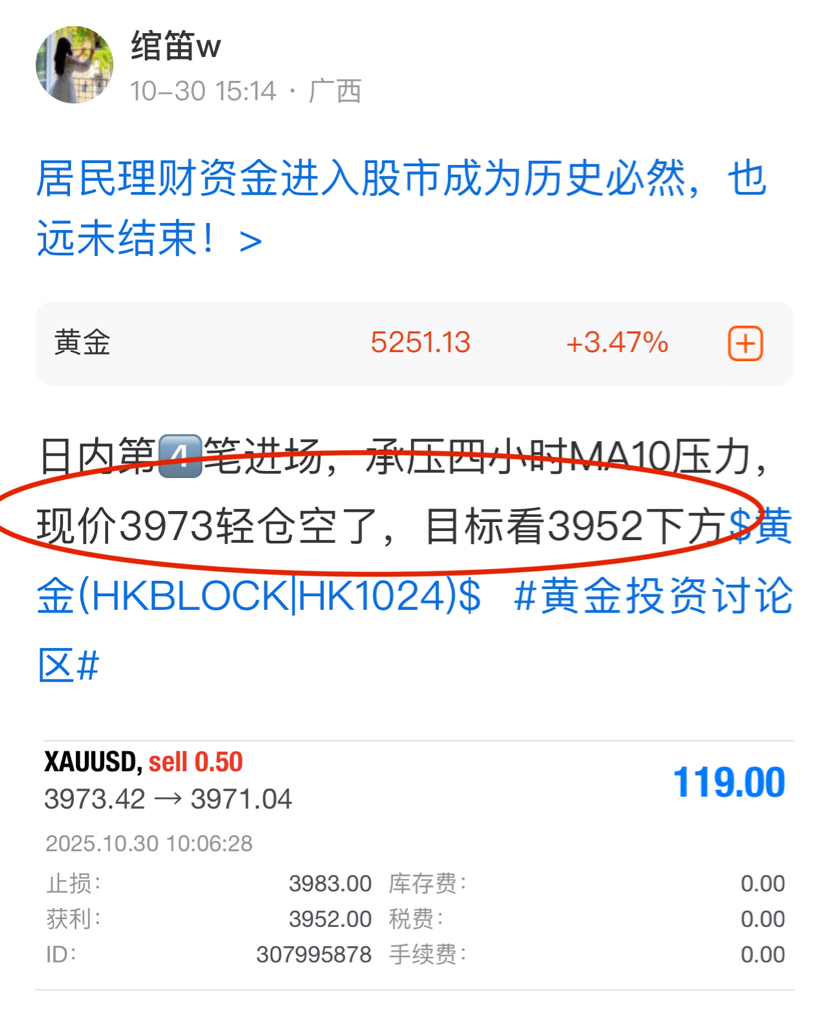 金价突破四小时布林带中轨压力3983位置,日内第4⃣笔单打保护离场现价3983上